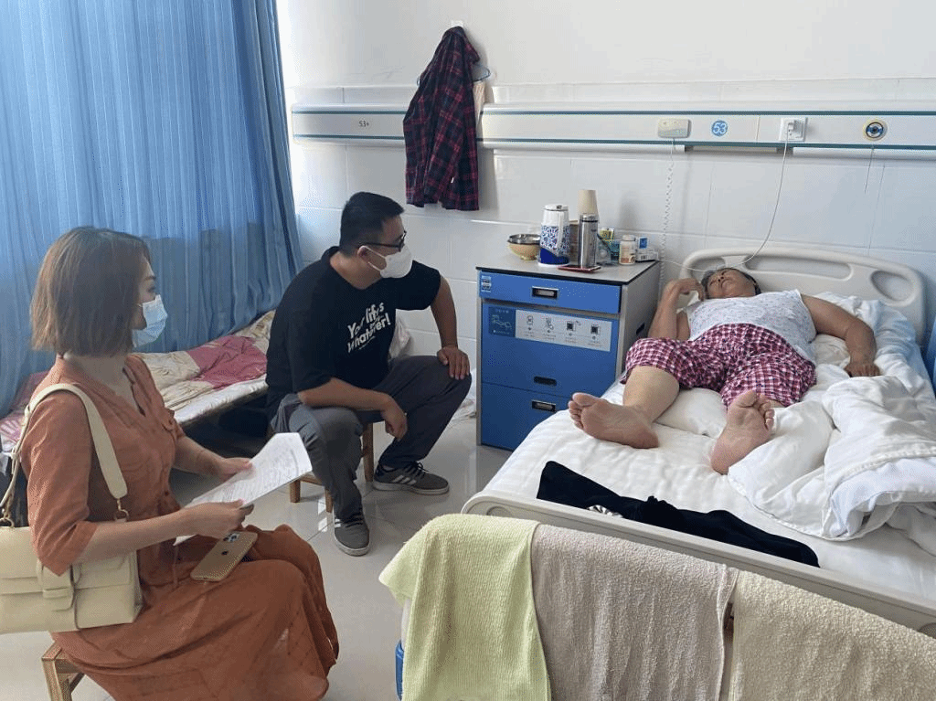 (公司走访组成员专程前往医院看望生病住院员工家长)
