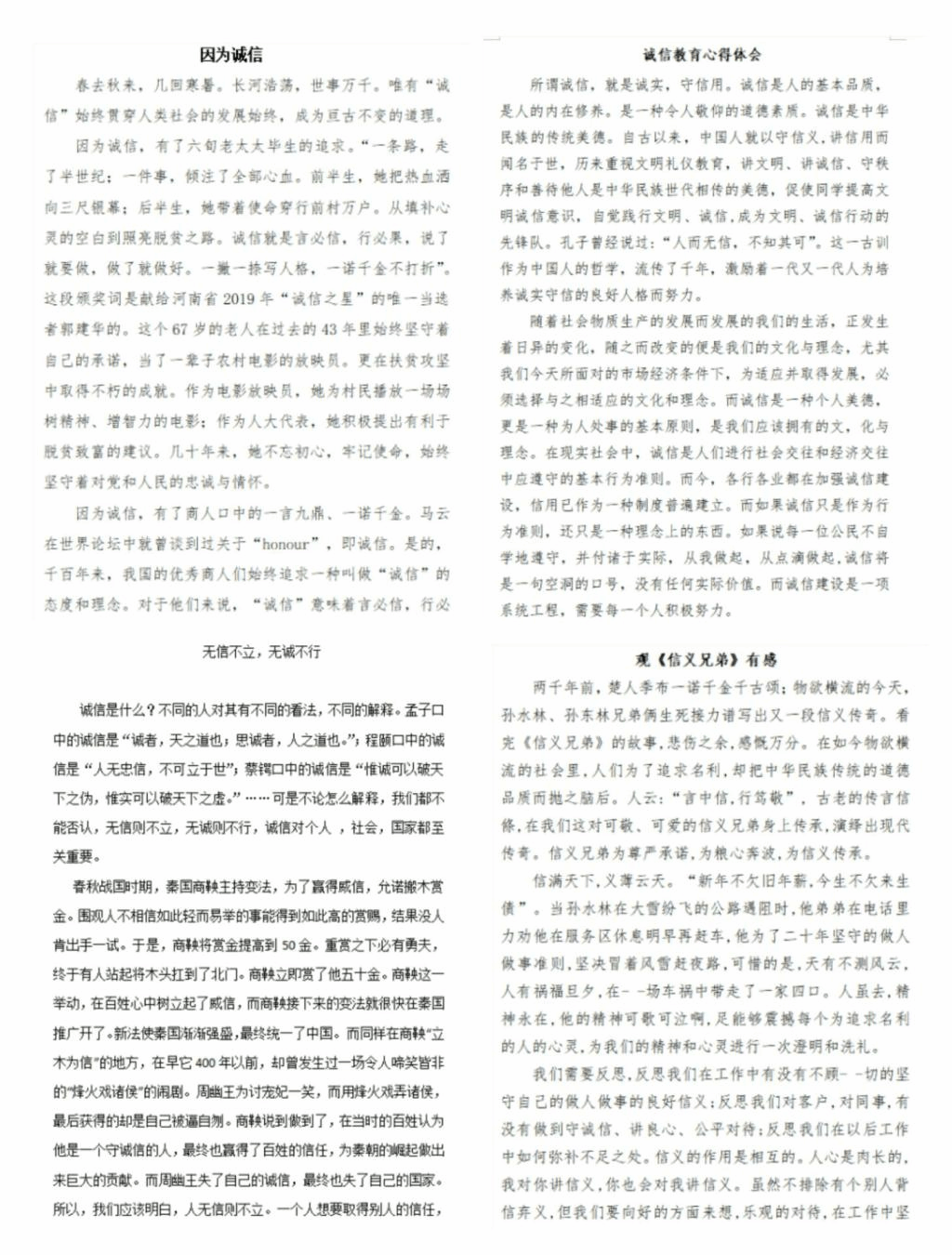 (诚信征文作品)