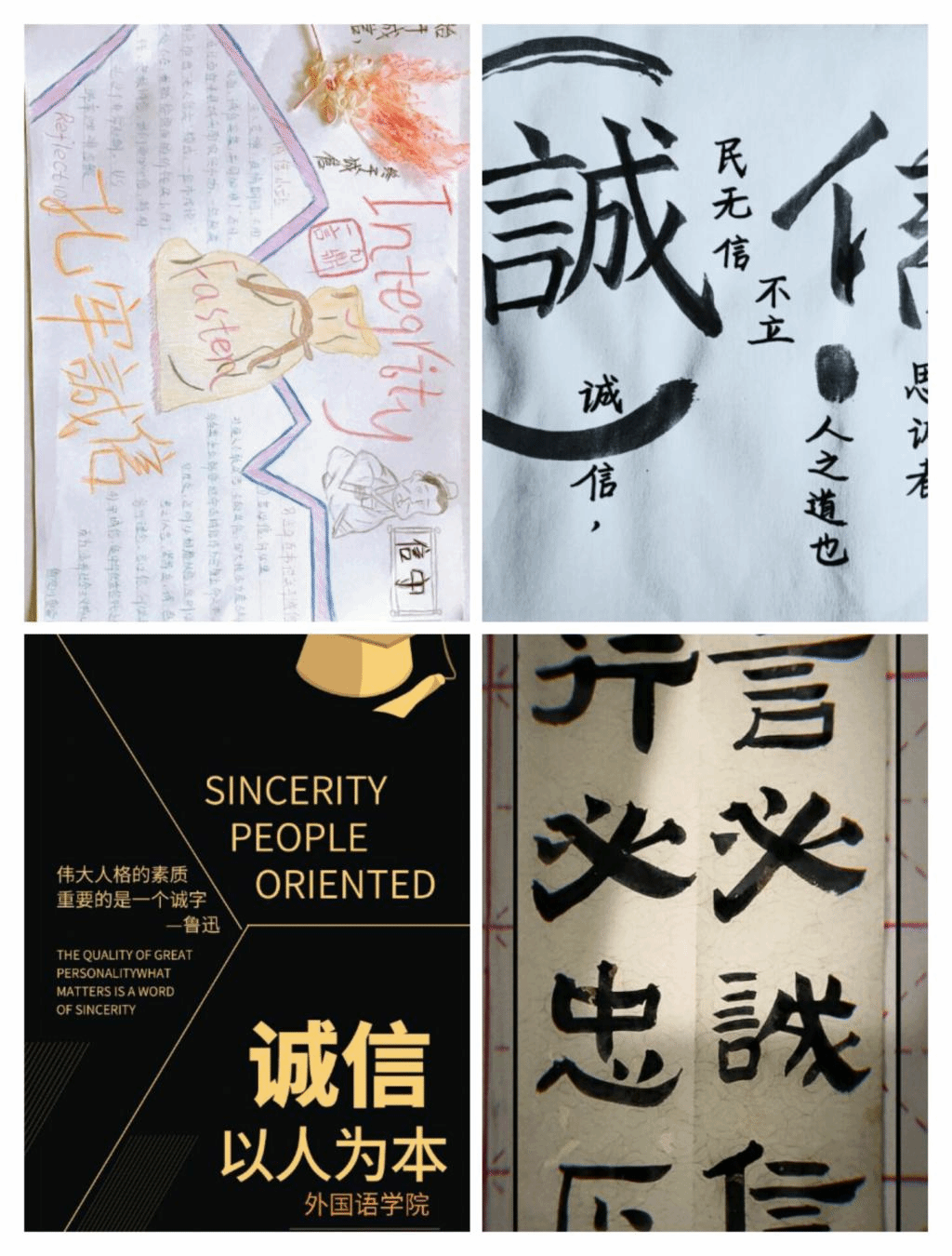 活动伊始,太阳成集团tyc122cc各个年级辅导员发出通知要求全体员工以“诚信”为主题进行文艺创作,作品类型包括征文、书法、平面设计,所有作品必须原创。活动期间,太阳成集团tyc122cc员工积极参与,并创作出多种类型的作品:与家人一起制作体现诚信的书画、音乐作品;参与线上主题征文活动;以及毛笔硬笔书法活动和电脑制作的平面设计类作品或手绘形式创作主题宣传画或相关海报、书签等。这些作品都利于凝聚人心,增强信心,传递了正能量,充分的体现了此次的主题,营造了良好的诚信氛围。