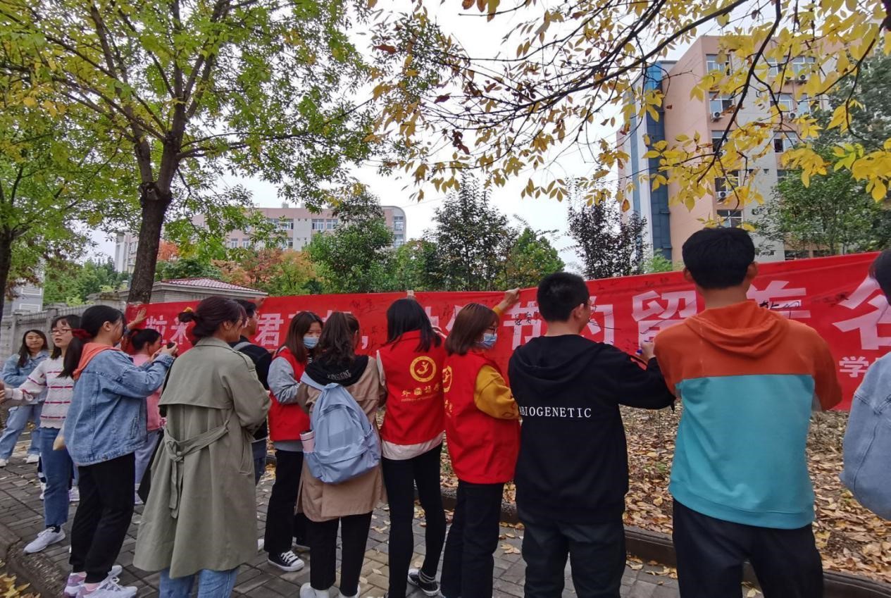 活动开始,青年志愿者协会在餐厅门口悬挂宣传标语横幅,宣读《关于制止餐饮浪费落实“五带头五严禁”的倡议书》,呼吁员工积极参与“半份菜”、光盘行动,感受食物的来之不易,形成尊重劳动和爱惜食物的思想意识。随后,同学们纷纷积极主动地在宣传标语横幅上写下签名感言,争做节约粮食的践行者。