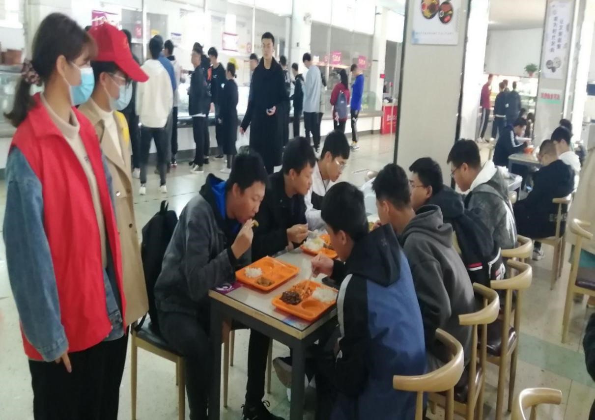 (志愿者向就餐员工宣传节约粮食)