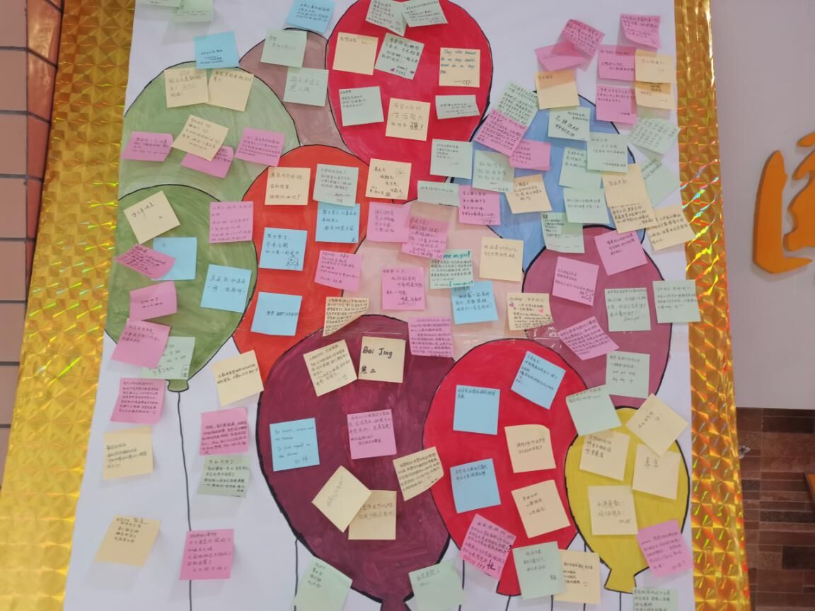 活动开始前,工作人员们精心准备了展板,展板的主题以气球和花盆为主要元素,寓意着茁壮成长的梦想正在悄悄萌芽,同时也表达着让烦恼随风而去的寓意。活动开始后,同学们积极参与活动,将自己的梦想、内心难以启齿的话或烦恼,以匿名的方式写在便利贴上然后贴在“气球”上。本次活动,员工们敞开心扉,把心中的梦想埋进土壤,把心中的烦恼大声“贴”出来,既是对自己心灵的关注,也缓解了内心的压力。
