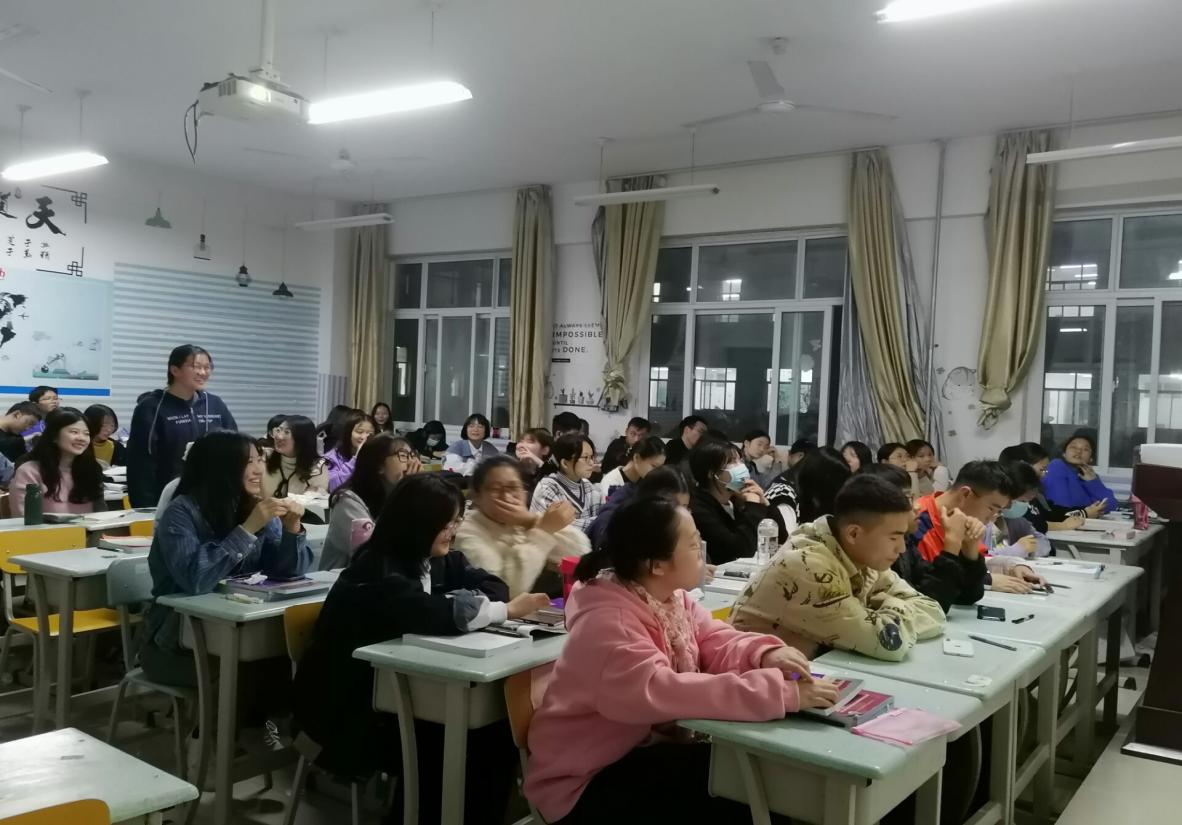 活动开始,主持人通过带领大家观看图片测试压力,分享实际事例等形式,让大家明白了生活中偶尔会感到压力,这是一种正常现象,我们要以正确的心态对待它。随后,主持人邀请同学们积极参与到心理减压小游戏中,让大家一起在快乐中减压。“数字炸弹”、“寂静中的呐喊”以及“快乐传声筒”等小游戏让同学们从平常的生活学习压力中得到短暂的放松和休息,本次活动在同学们的欢声笑语中进入尾声。最后,主持人介绍了几种排解压力的适当方法,希望同学们科学对待压力以及负面情绪,能以合适的方法进行排解。活动结束后,同学们纷纷表示在今后的生活中会重视心理健康,合理调控自己的情绪。