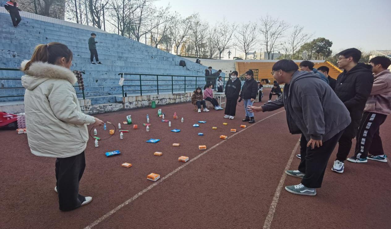 活动期间我院结合公司特色和员工需求,设立了七个趣味游戏,盲人击鼓、表演、投乒乓球、英文版你画我猜、颠乒乓球、飞花令和抢椅子游戏。同时,参与同学在此过程中可以赢得纸券以获得套圈机会套取奖品,趣味横生的游戏让同学们参与热情高涨,活动在一片欢声笑语中落下帷幕。