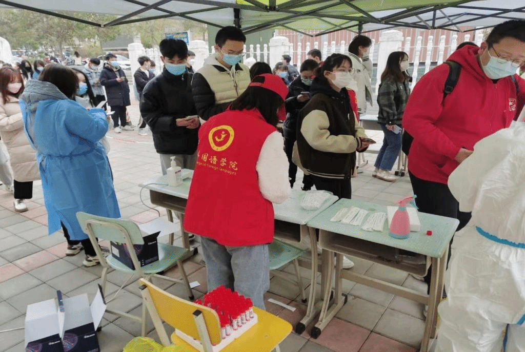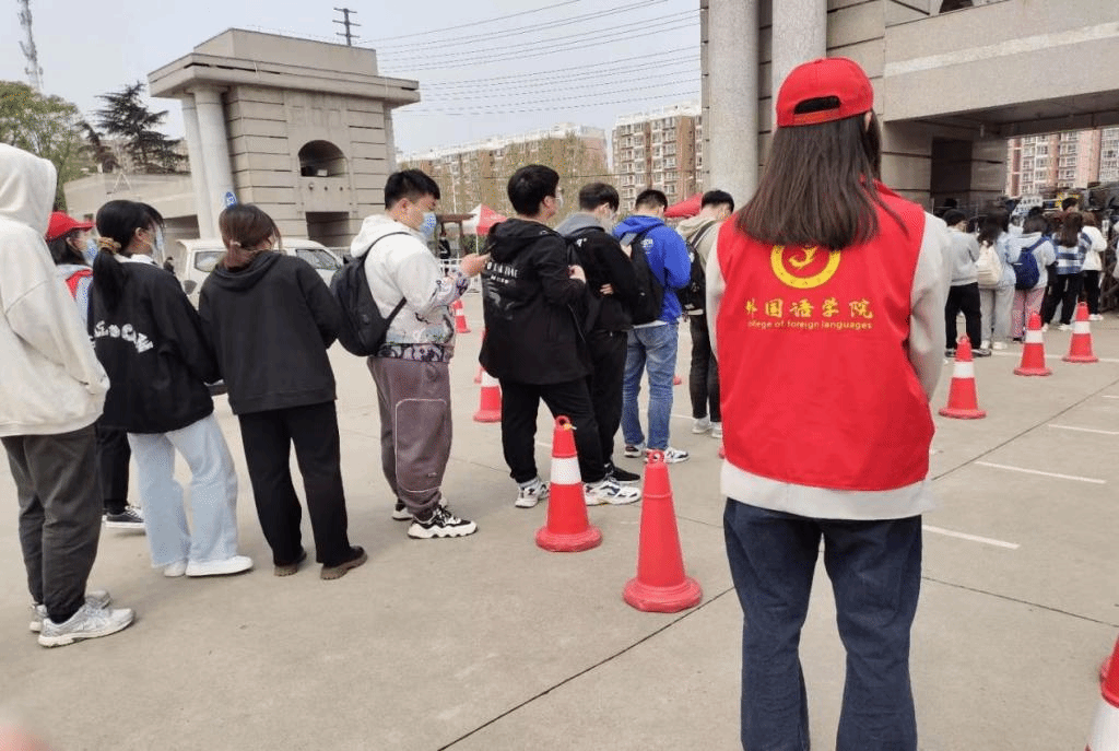 (青年志愿者维护全员核酸检测秩序)