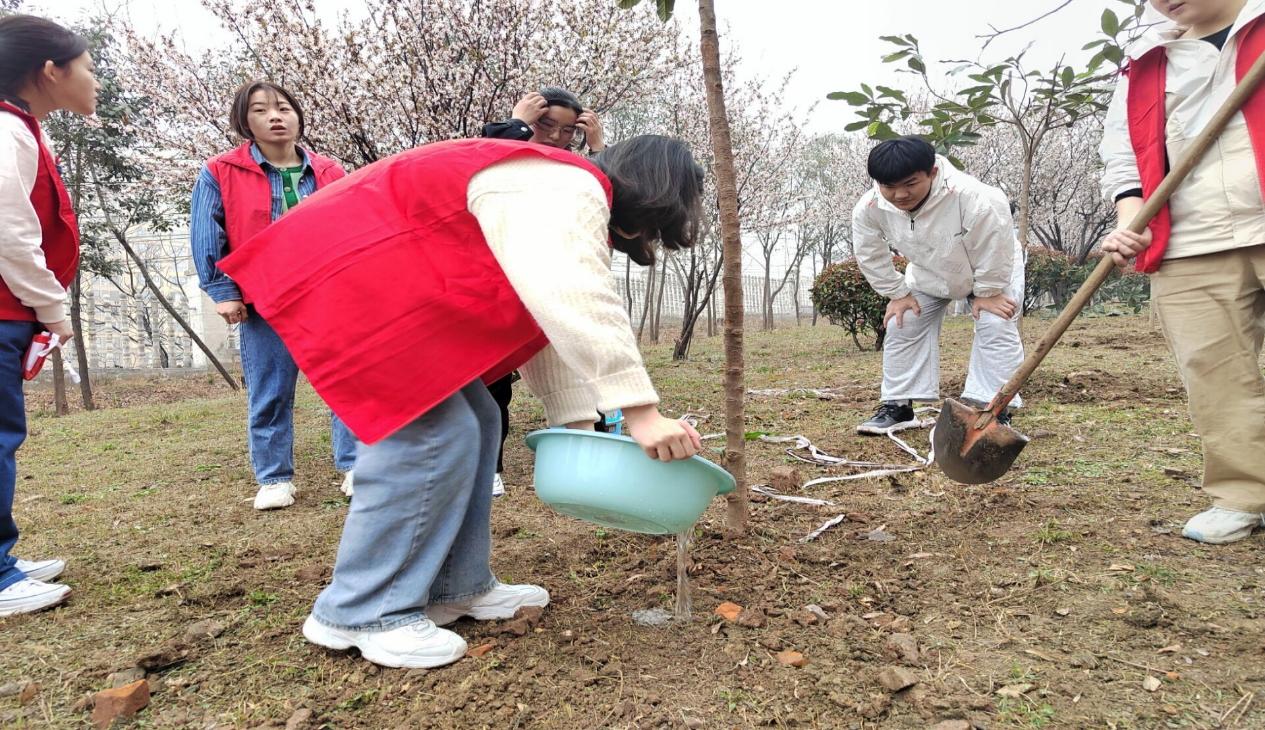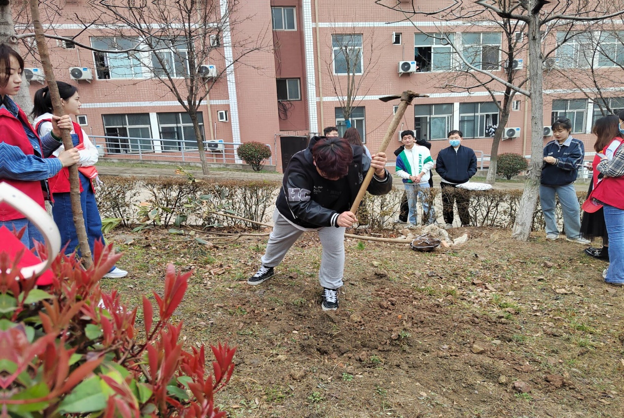 植树不仅能美化校园,同时还可以抵挡风沙,保持水土。本次活动开始后,各位志愿者干劲十足,热情满满,在指导老师的指导下,认真进行栽种。最终,经过志愿者们的共同努力,一棵棵树苗被成功种下。这不仅为校园增添一抹绿色,也将绿色环保的理念“种”进了各位志愿者的心中。
