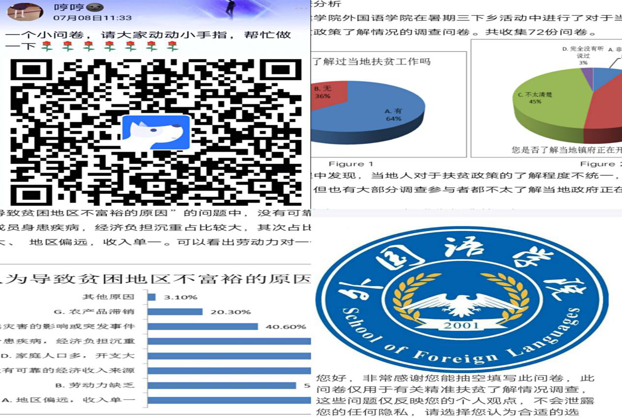 专项调研团队主要开展线上和线下互相结合的方式进行专项调查。活动开始,调研团队部分成员在线上设计并发放调查问卷,有针对性的分析当地居民对“精准扶贫”政策的参与和了解。活动过程中,调研团队成员在线下帮助当地儿童学习英语知识,学唱英语歌。同时,调研团队志愿者向当地村民询问对国家“精准扶贫”政策的了解,并向当地村民宣传环保知识,增强当地村民的环保意识。