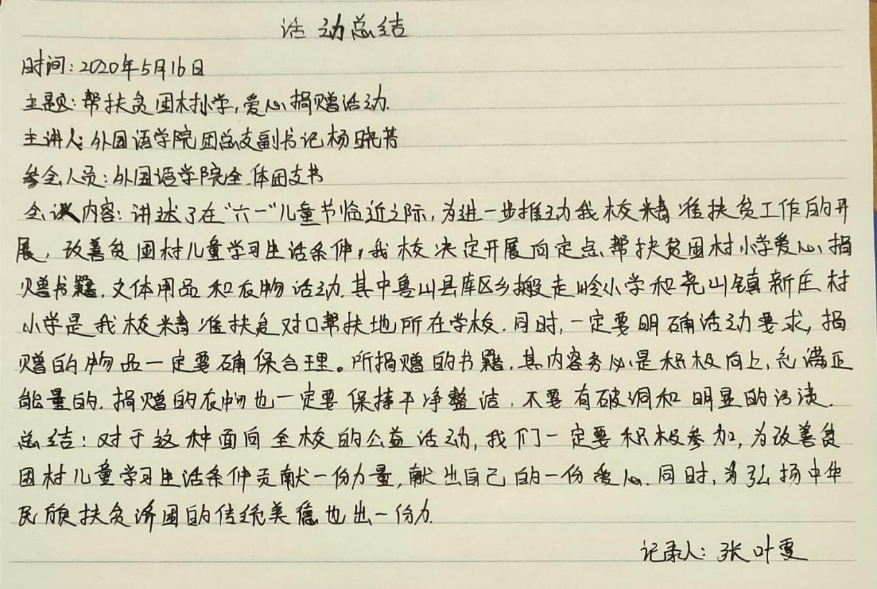 对于本次活动,员工会负责人杨晓芳首先在线上召开了工作动员会,对工作进行安排,明确活动要求,并说明本次活动捐赠的物品要求是适合小员工的各类文具、课外读物、字词典、棋类、球类以及其他文体用品和衣物。接着,各团支书立即着手在班级内布置,动员全班同学。同学们收到通知后,立马开始行动,整理适合小员工的衣物和书籍,询问邮寄的具体事宜及其他细节问题,希望尽自己的绵薄之力,帮助贫困村小员工。