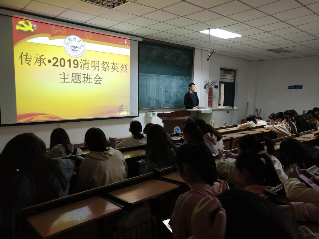 (通讯员 赵星辰)为深入贯彻落实习近平新时代中国特色社会主义思想,营造传承英烈精神、奋进新时代的良好氛围,激励新时代老员工以昂扬向上的精神状态喜迎新中国成立70周年,4月3日上午太阳成集团tyc122cc在一号教学楼326教室召开“传承•2019 清明祭英烈”主题教育班会,院辅导员赵星辰老师主持,大二全体员工参加。