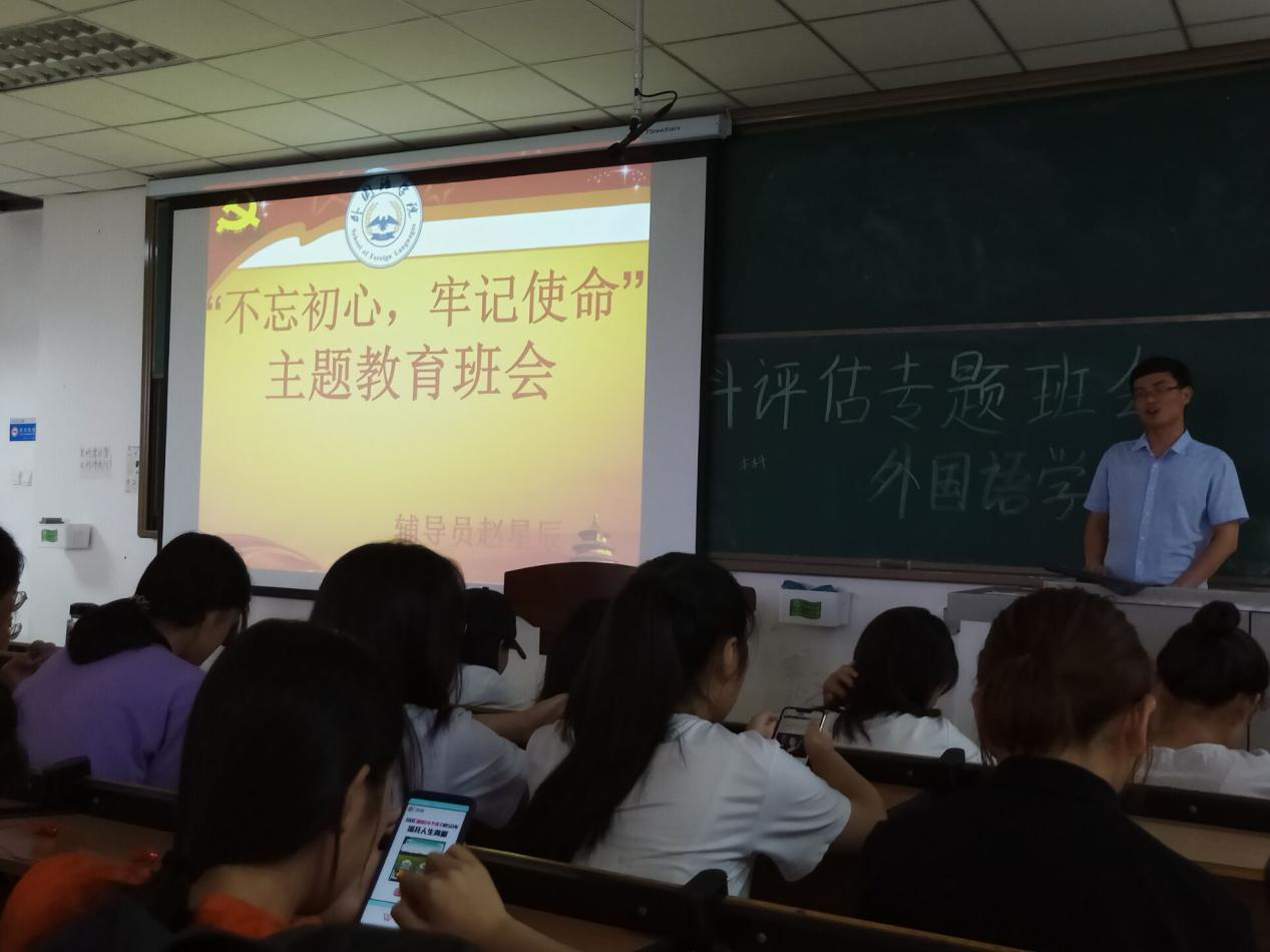 (通讯员 赵星辰)为贯彻落实习近平总书记关于“用党的历史教育党员、教育干部、教育群众尤其是青少年”的重要指示精神,扎实开展“不忘初心、牢记使命”主题教育,6月21日下午太阳成集团tyc122cc在一号教学楼326教室召开“不忘初心、牢记使命”主题教育班会,大一全体员工参加班会,辅导员负责主持。