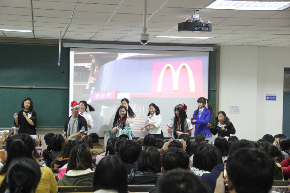 本次圣诞晚会的主题是“星夜狂欢,悦动圣诞”。伴随着欢快、动感的音乐,一场俏皮的开场街舞掀开了晚会的神秘面纱。随后,英文话剧《Cinderella》更是博得声声喝彩,更有外教Barbara与同学们同台合唱名曲《Jingle Bells》,引发了场下观众们一片尖叫声和欢呼声,会场的气氛持续升温。梁佳佳的歌曲《The Show》、张玉龙的诗歌朗诵《Youth》又将同学们带入了一个静谧、祥和的圣诞之夜。在接下来的游戏环节“lucky Drag”中,为员工送上惊喜。最后,晚会在抽奖活动后落下帷幕。