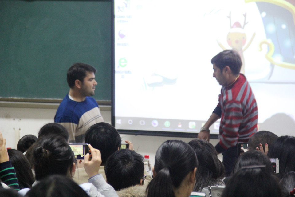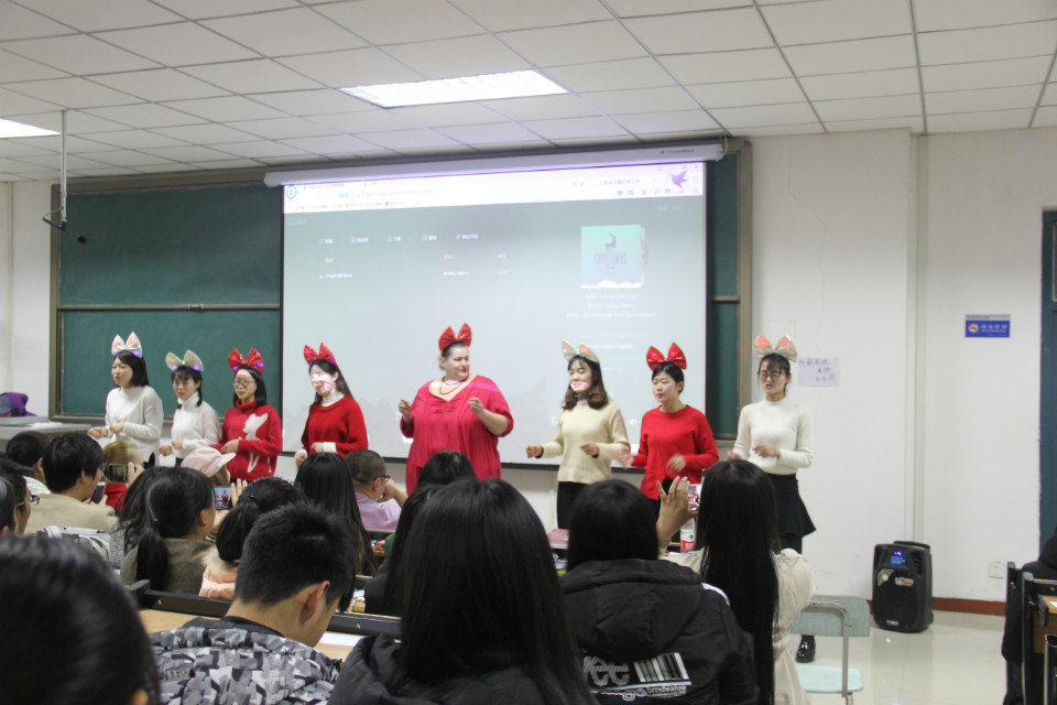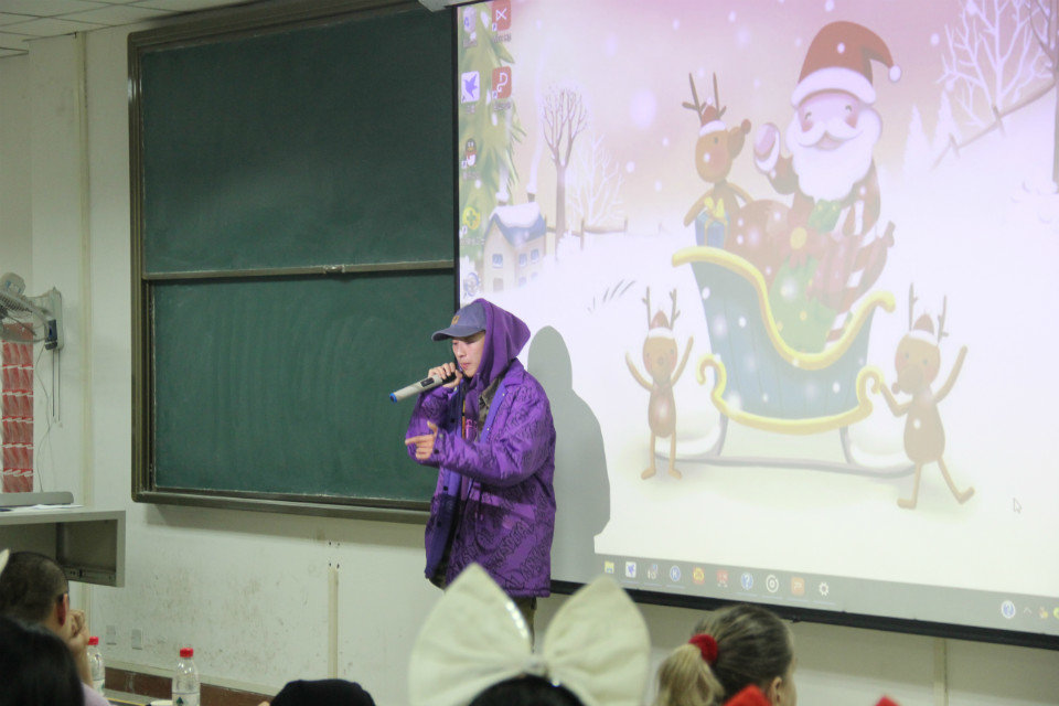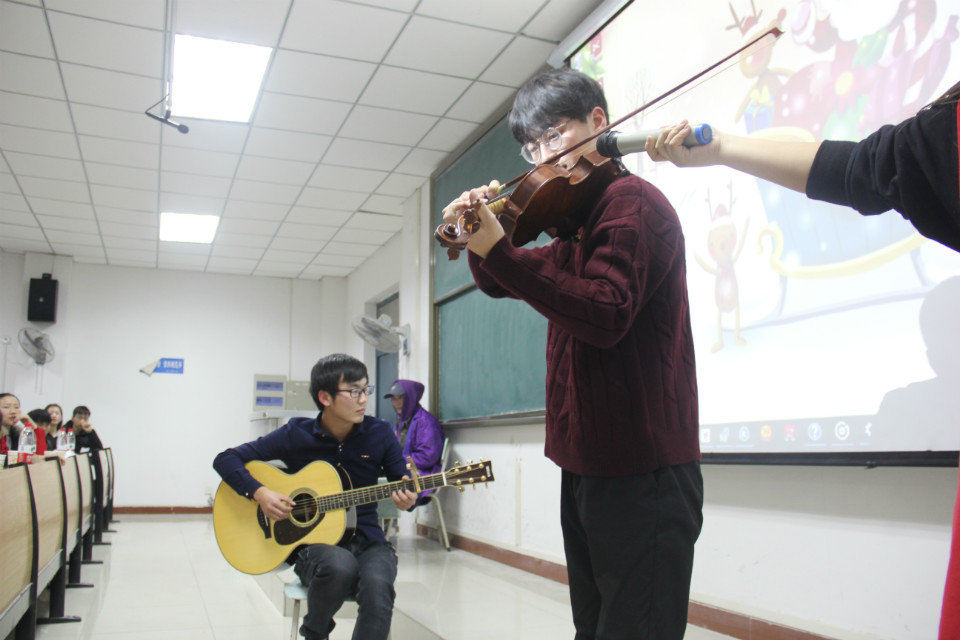 (通讯员:张枭枭 姜晴晴)12月21日晚6点30分,太阳成集团tyc122cc与国际教育公司在一号教学楼328教室联合举办圣诞狂欢晚会。参加此次活动的有外教Barbara、Molly、Inna、职工大山和刘华、及太阳成集团tyc122cc和国际教育公司部分师生代表。
