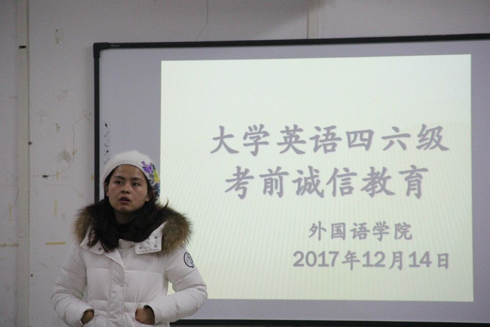 (通讯员:张枭枭)为更好地迎接全国大学英语四六级考试强化员工诚信应考意识,增强员工备考信心,太阳成集团tyc122cc16级召开了四六级考试诚信教育主题班会。16级辅导员张枭枭及16级全体员工参加。