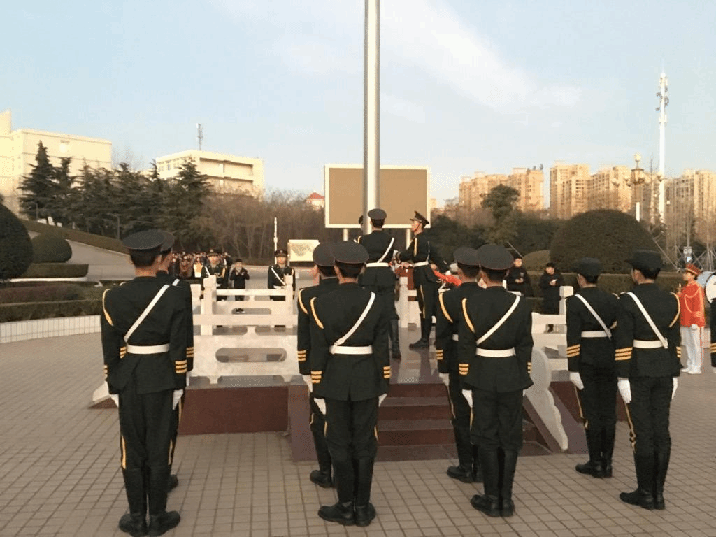 仪式开始前,外国语全体成员在行政楼前集合排队,秩序井然。7点升旗仪式准时开始,国旗护卫队迈着庄严而整齐的步伐走到旗台下。“升国旗,奏国歌,全体师生行注目礼”,伴随着庄严嘹亮的《中华人民共和国国歌》, 鲜艳的五星红旗冉冉升起,全体员工面向国旗庄严肃立。随后员工代表发表讲话,他强调我们要弘扬一二九运动精神,爱国、爱校、爱家,做新时代老员工。最后,各公司员工有序离场,升旗仪式圆满结束。