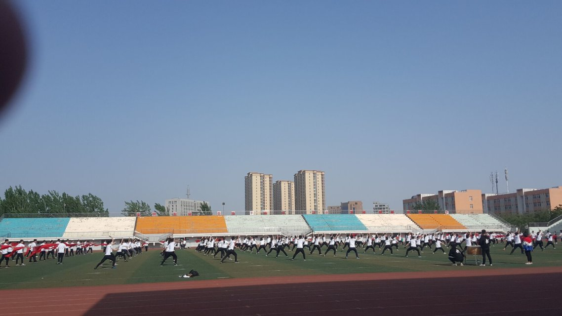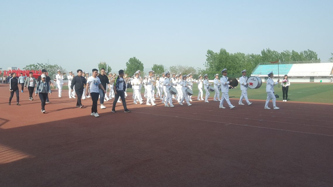 下午四点,彩排正式开始,首先入场的是着装整齐、步伐一致的国旗护卫队,他们身着绿装,伴随着响亮的国歌映入我们的视野。他们身后是抬着校徽的护卫队、鲜花队和红旗队。接着,伴随着激昂的运动进行曲,各个公司开始整齐队列,进入操场开始演练,各公司组成的花束队成为此次开幕式一道亮丽的风景线。随后出场的是舞旗者,入场后四队交叉形成方队,面向田径场主席台整体入场。在高昂的音乐中,他们挥动着手中的红旗,在音乐的变幻下形成一面旗帜。随后进行的表演是军体拳,刚劲有力的表演充分展现了公司员工青春洋溢的精神面貌。