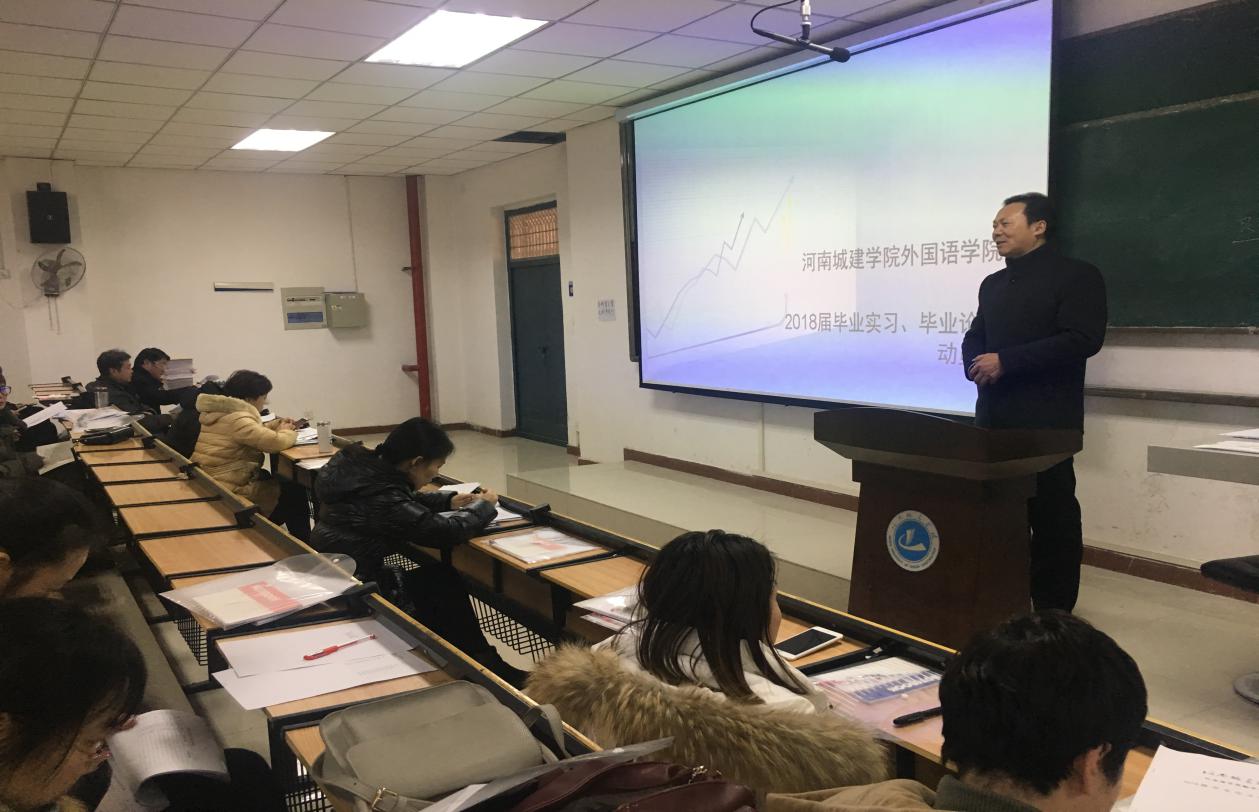 随后英语、翻译两个专业教研室主任马建奎、郑峥分别向毕业生说明了毕业实习和毕业论文过程中需要注意的问题以及一些重要时间节点。