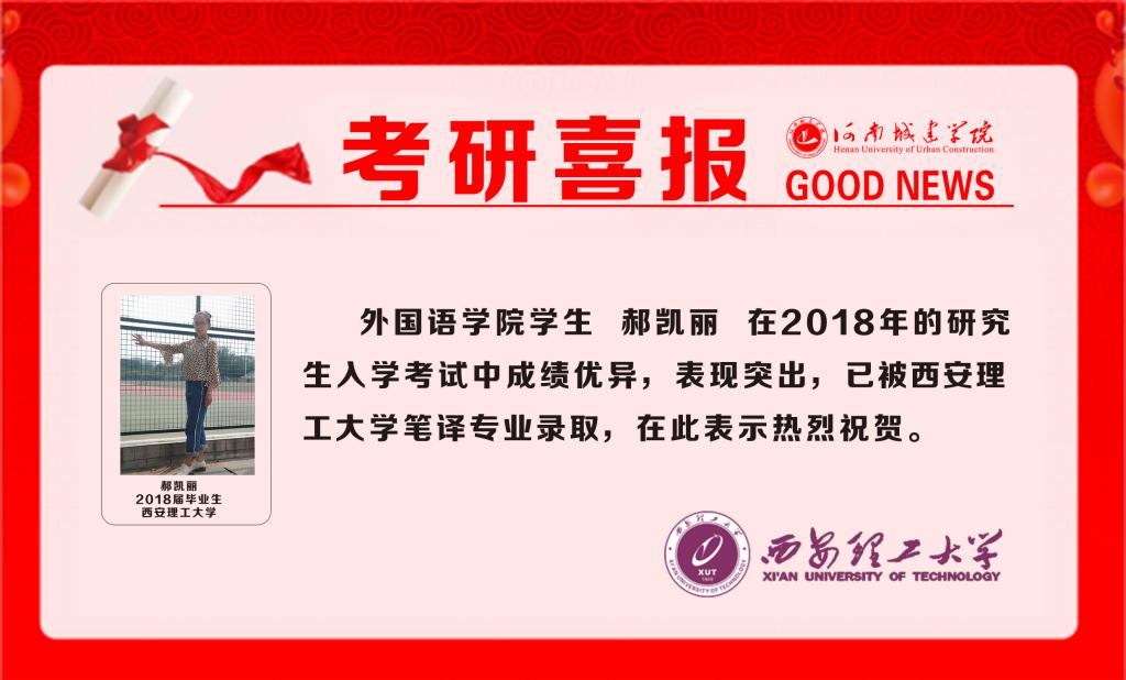 2018年研究生招生复试工作的陆续展开,公司员工被国内外高校录取的捷报频频传来。据悉,赫凯丽同学已成功被西安理工大学笔译专业录取。