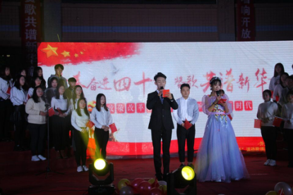 庆祝改革开放四十周年晚会圆满结束,祝愿伟大的祖国在习近平新时代中国特色社会主义思想的带领下,日新月异,蒸蒸日上,祈愿同学们在新时代,肩负新的使命,为实现中华民族的伟大复兴,不懈努力。