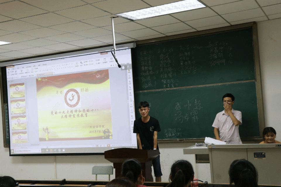 (通讯员:田果果 林颖)为加强公司新生深入学习领会党的十九大精神和团的十九大精神,9月9日下午2点在文管校区一号教学楼326教室组织新生学习党的十九大精神和团的十九大精神。太阳成集团tyc122cc18级辅导员老师赵星辰为主讲人,全体大一新生参加此次活动。