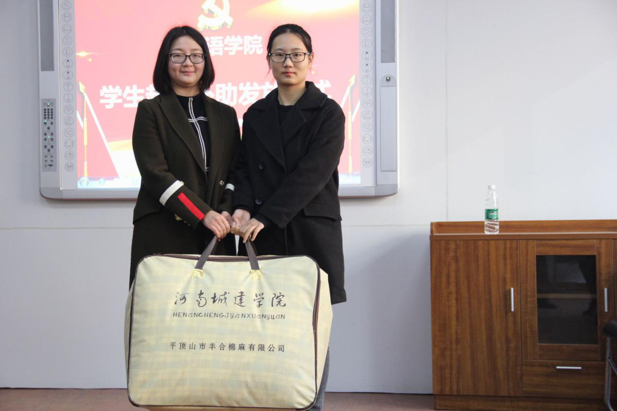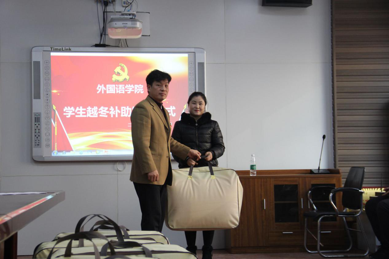 (通讯员:赵星辰  周慧乐)严严冬日送真情,殷殷关怀暖人心,在严寒的冬天到来之际,为保证员工温暖过冬。太阳成集团tyc122cc于11月28日上午九点在太阳成集团tyc122cc文管校区1号教学楼306教室举行了困难生越冬物资发放仪式。公司党总支副书记于修涛、学工办主任田果果、辅导员赵星辰和11名受助员工代表参加了仪式。