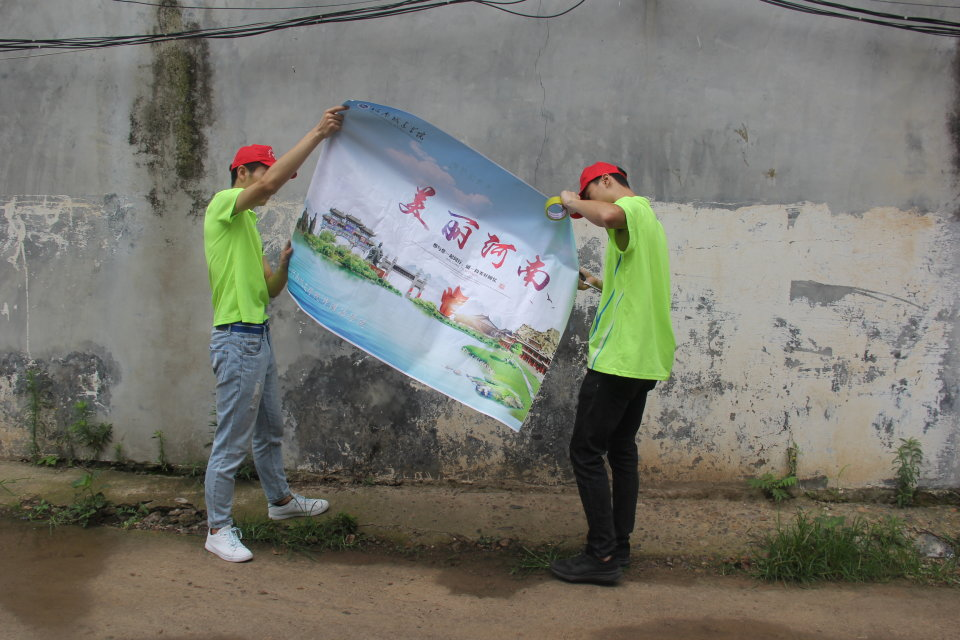 7月31日,公司美丽中原实践团分为三组,第一组前往村头和村委会,张贴有关的宣传海报,引导村民前来观看学习;第二组志愿者前往村中聚集人多的地方,采访他们认为村中现在的环境问题,村民们非常配合,指出主要是水资源污染以及空气污染问题,村民们认为将这两大问题解决,村庄将会是一个全新的面貌。第三组则前往村中各个地点清洁卫生,让村庄变得更加干净,为村民做出示范作用。
