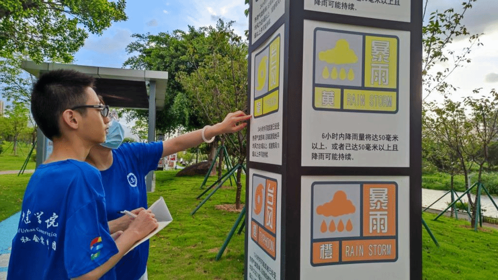 在本次活动中,实践队员通过在公共场所张贴宣传海报,实地观察气象风向标等方式,调研各地气象科普宣传普及情况,传播生态文明建设和综合防灾减灾理念,助力基层气象科普工作。