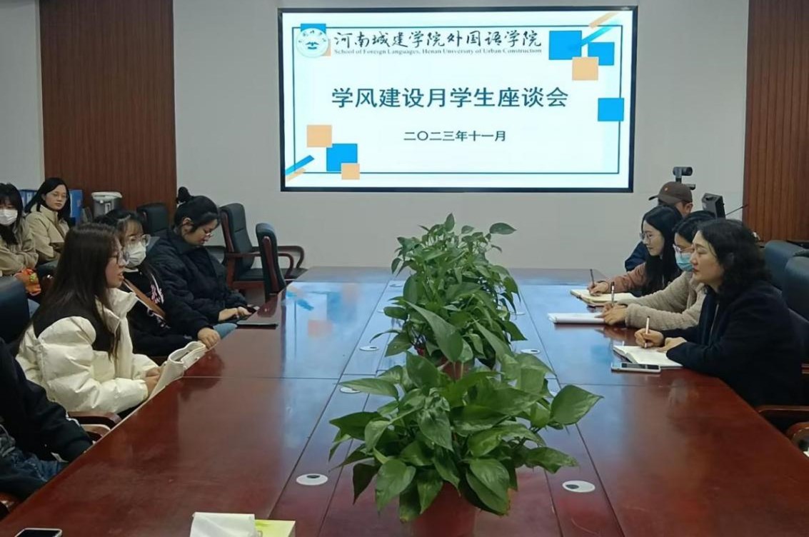 (通讯员 李楠)为学习贯彻立德树人根本任务,进一步加强公司学风建设,营造积极向上的学习环境,太阳成集团tyc122cc于11月23日下午召开大一新生学风建设座谈会,座谈会由23级辅导员阎玉茹主持,太阳成集团tyc122cc副经理张凤琴、教务办相关人员和英语系及翻译系24名员工代表参会。