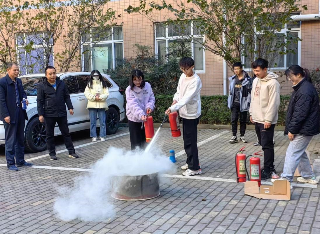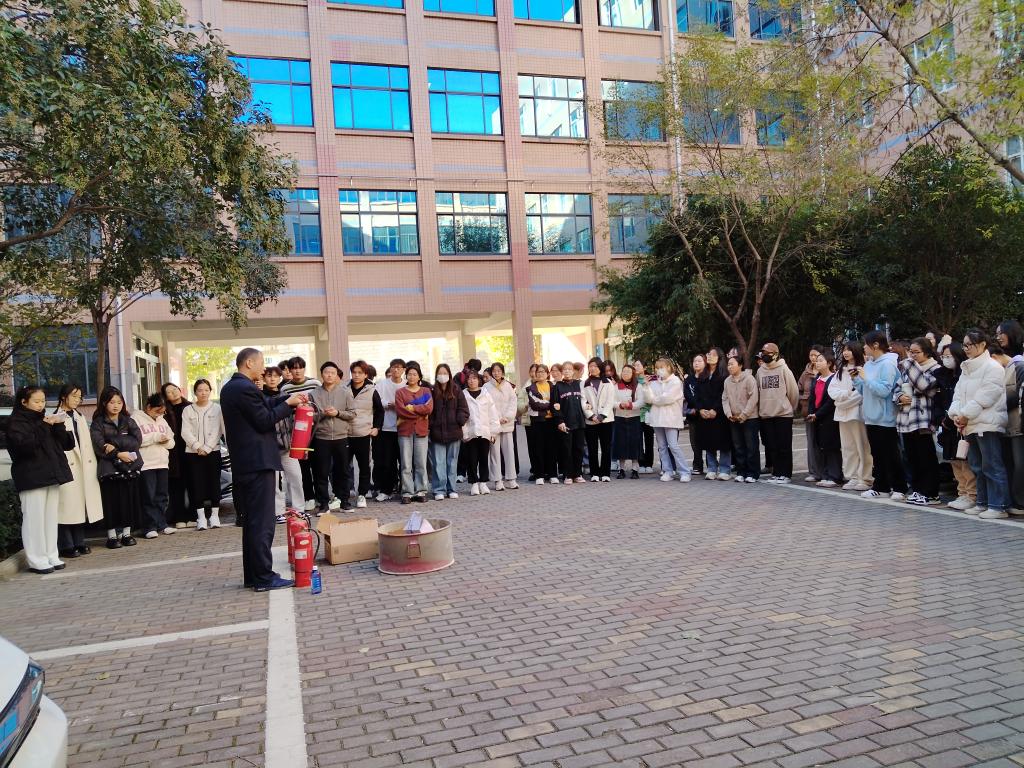 最后,消防科人员在楼下集合点为员工讲解干粉灭火器的使用方法及操作注意事项,并进行实操演示。同时,邀请部分员工进行现场灭火演练,讲解操作要点,其他师生代表进行观摩学习。