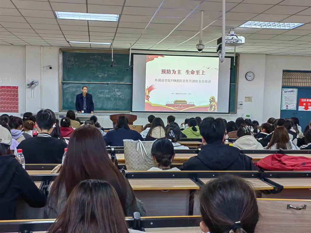 魏见岭在1#328教室,全方位、多角度地为公司师生讲解预防校园火灾的方法和措施,熟悉遇到火险时需要掌握的应急技巧和逃生注意事项,牢记119消防警报和灭火器的正确使用方法。应急逃生演练环节,员工们在相关老师的指导下,按照“弯腰低姿、捂住口鼻”的指令,沿逃生路线有序撤离至楼下安全地带集合。