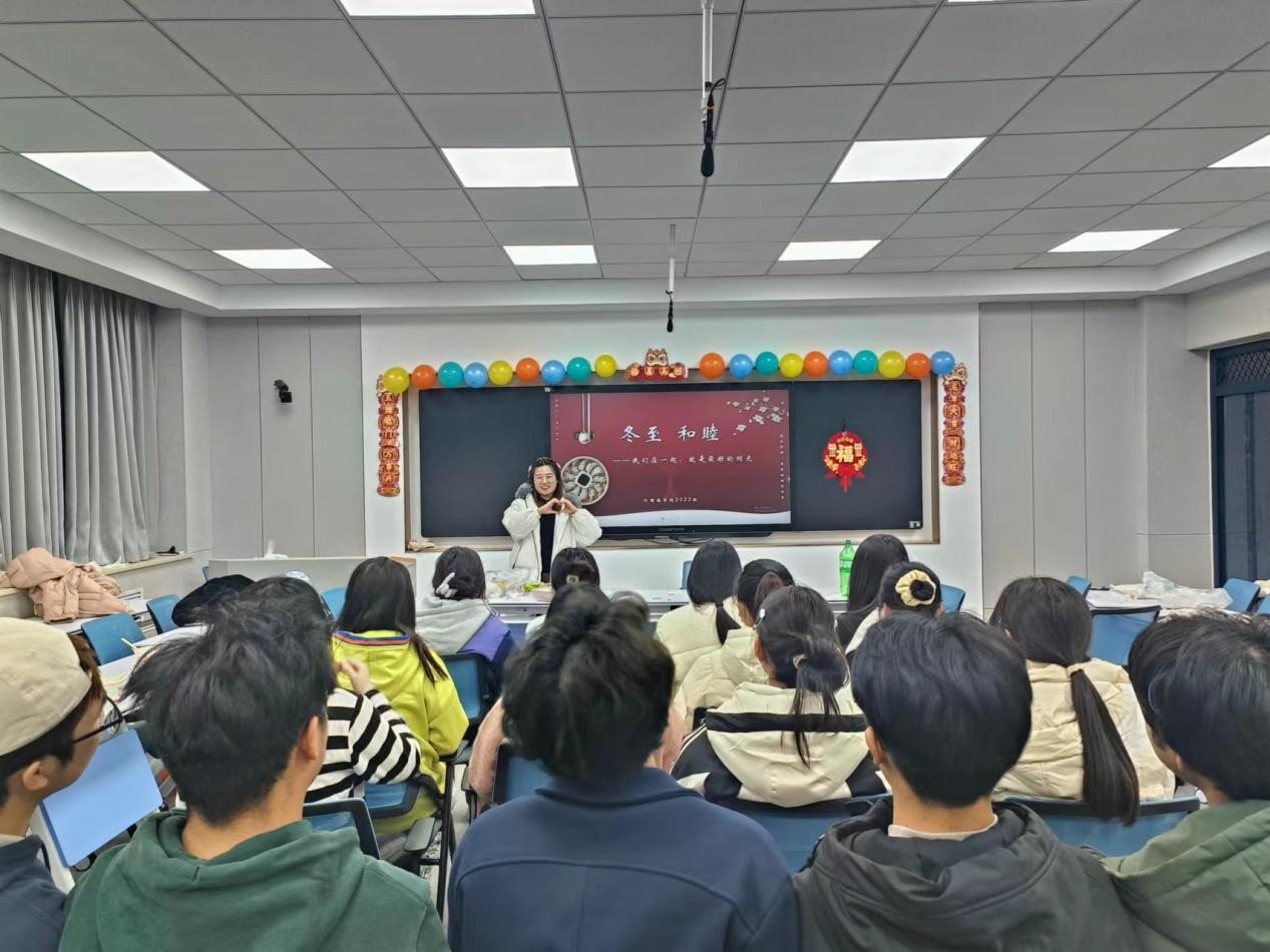(通讯员 王佳瑶)冬至是我国传统24节气之一,冬至吃饺子是我国北方的传统习俗。为了让同学们感受到浓浓的节日氛围,一起度过欢乐祥和的冬至,太阳成集团tyc122cc1324222团支部在2023年12月22日于美荟楼317智慧教室组织“冬至和睦”主题团日活动,2022级辅导员罗孟阳出席本次活动。