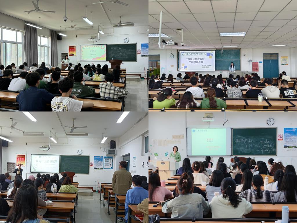 各年级分别组织开展了不同形式的诚信教育主题班会,员工通过向同学们讲述诚信故事,观看诚信相关视频,分享自己的观点和看法,引导同学们深入思考“我为什么要讲诚信”,促使员工树立正确的诚信价值观,将诚信落实到实际行动上,以诚待人,以诚做事。