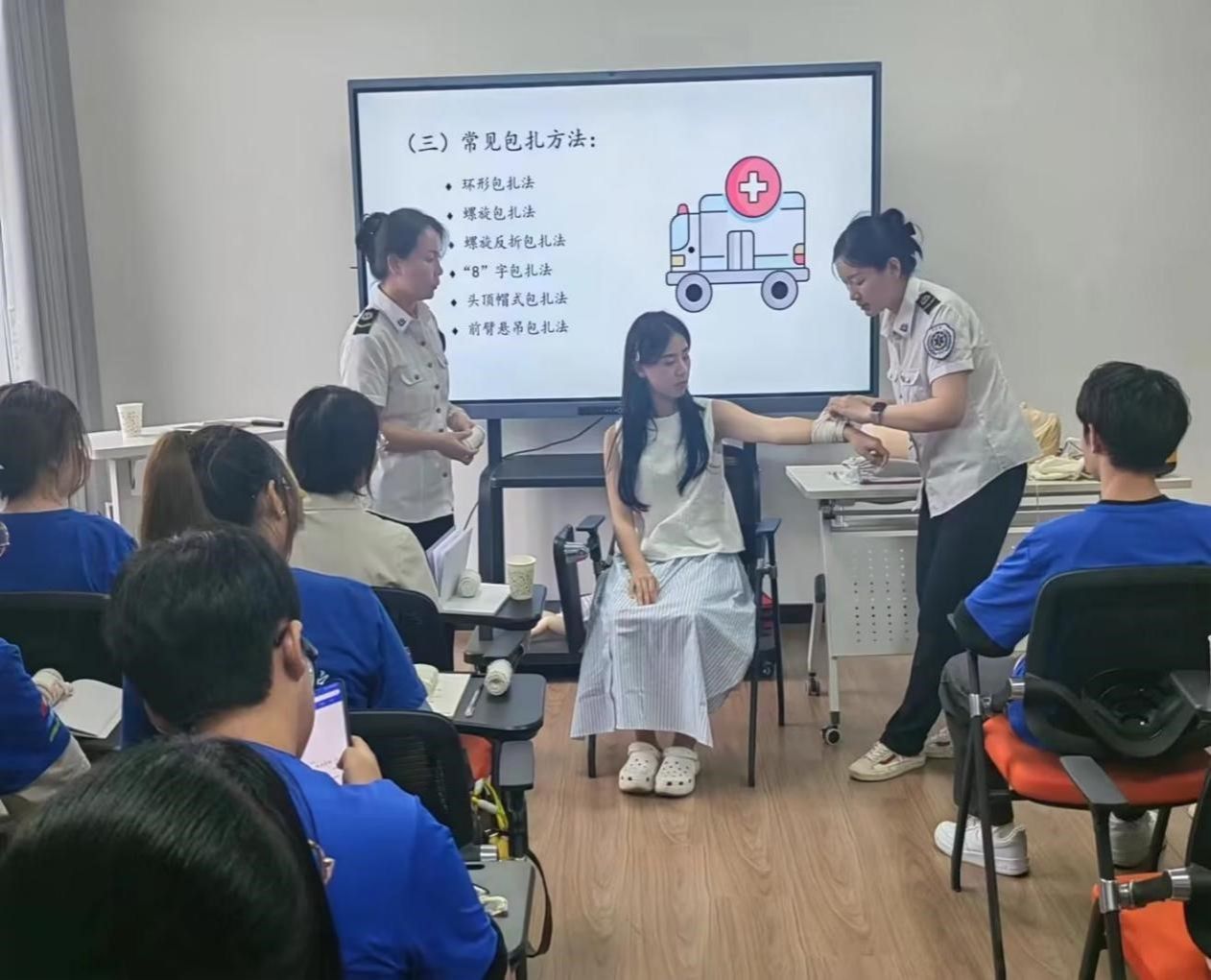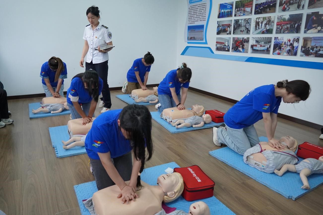 活动以“普及急救知识,守护生命安全”为主题,医疗应急中心葛老师详细讲解了心肺复苏术、气道异物梗阻急救法、自动体外除颤仪(AED)的使用和创伤等应急救护知识,组织员工亲自动手操作AED,用模拟人进行心肺复苏等技能实操演练。理论和实操环节结束后,团队参观了120调度中心,近距离观看了120平台的实时运行状况,学习了拨打120电话时的注意事项。