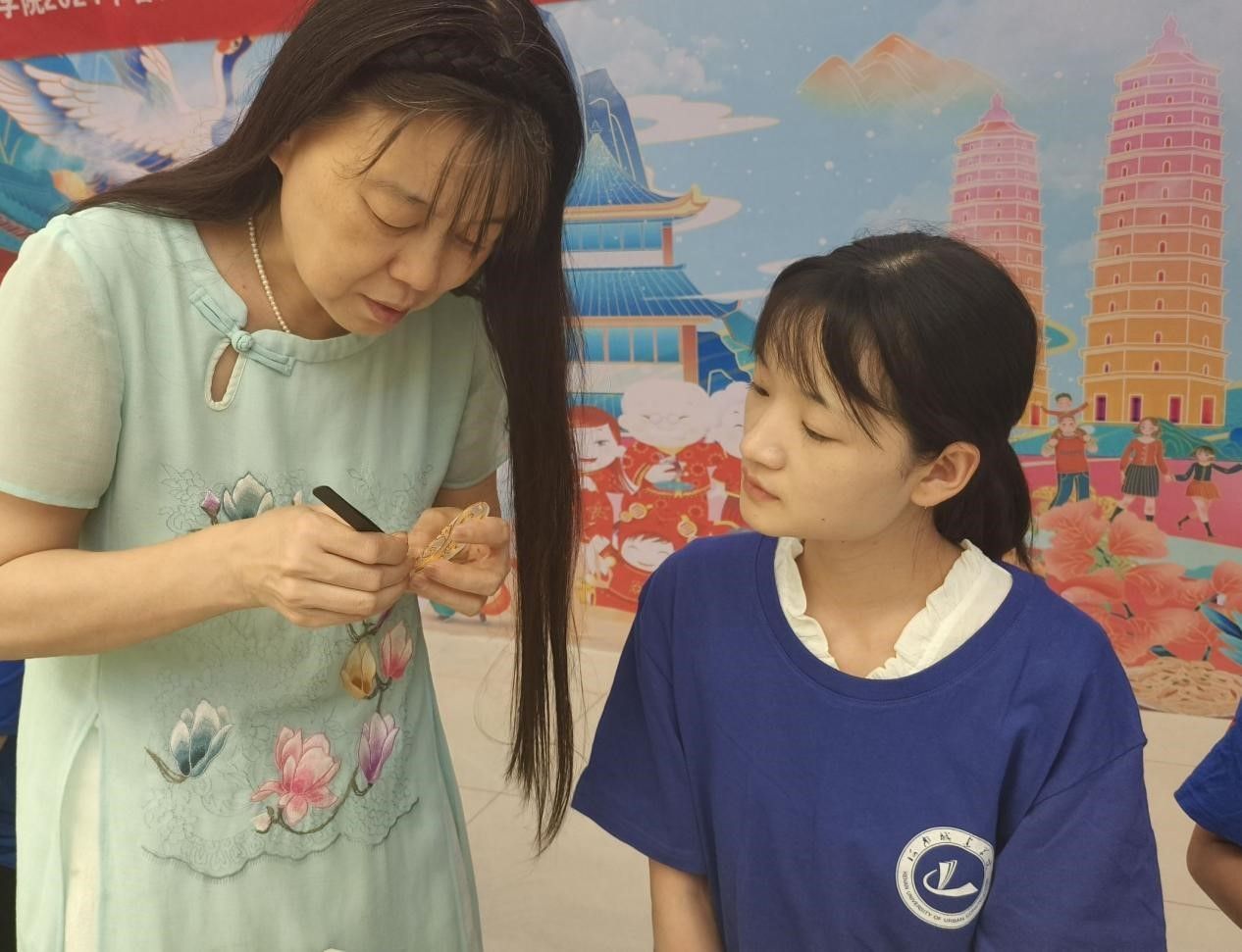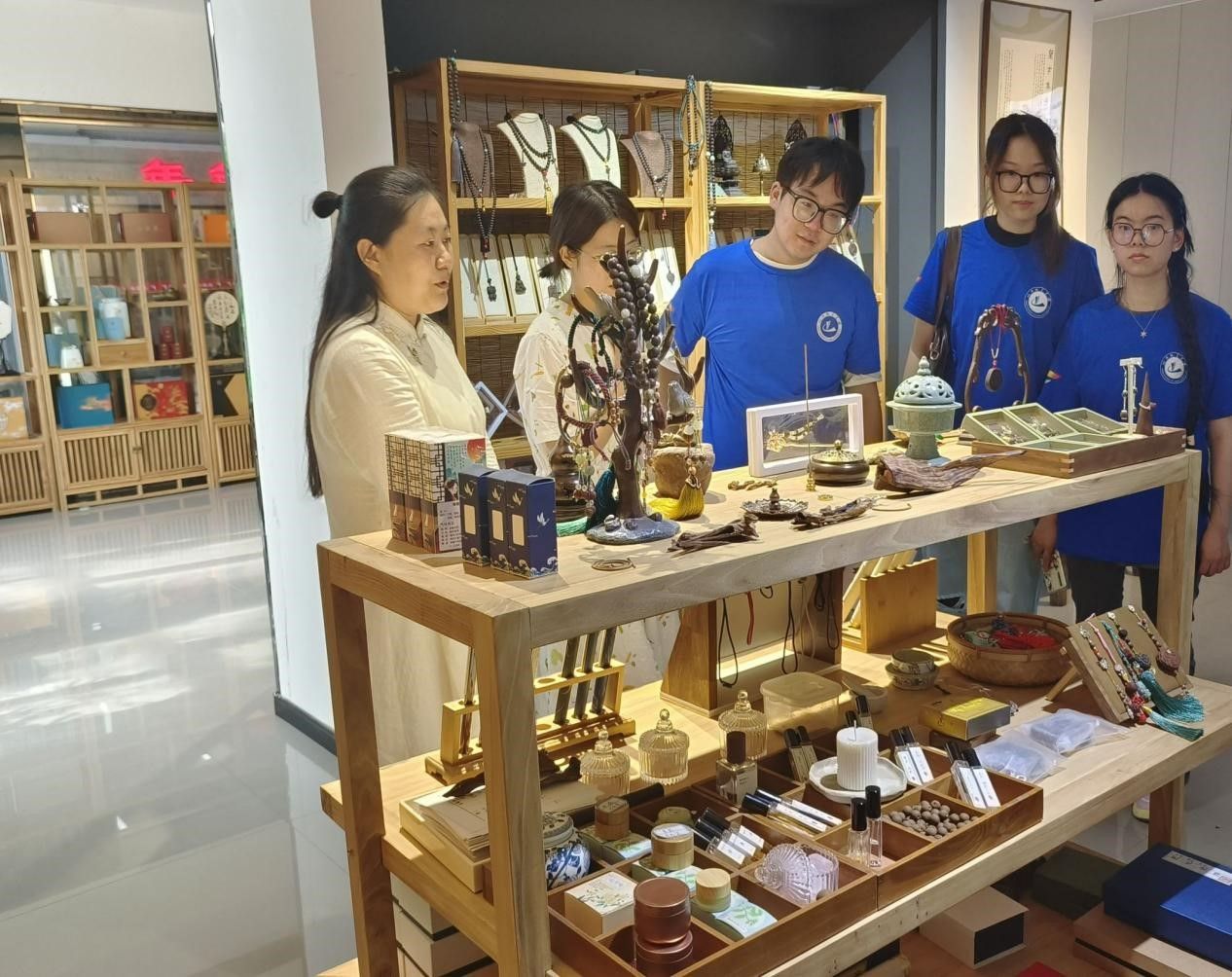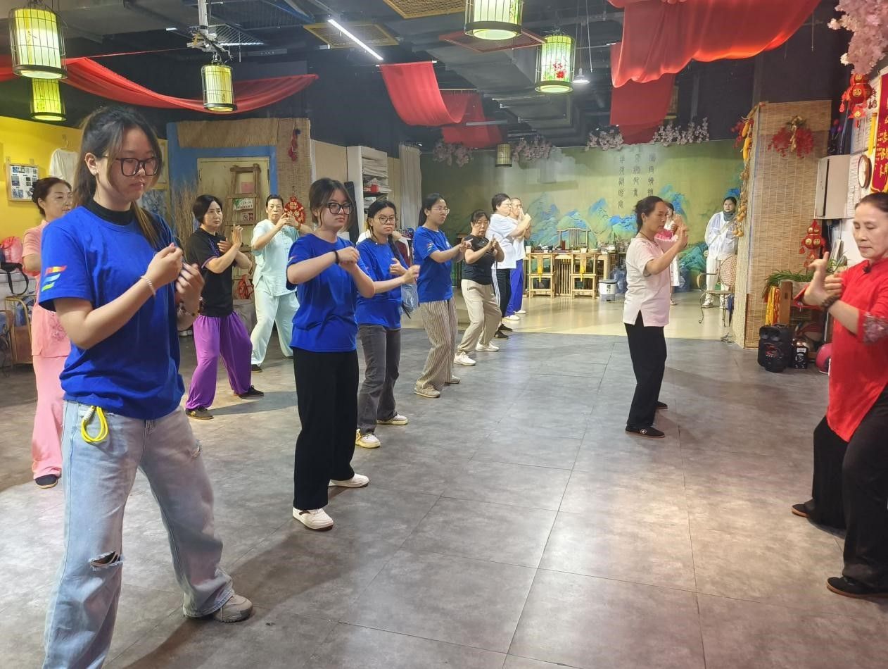 实践团首先来到平顶山市东城国际中心,在李氏面塑和掐丝技艺传承人李万里老师的指导下,学习并亲手体验面塑和掐丝珐琅的制作过程。随后,团队跟随杨氏太极传承人学习太极拳,了解当下太极拳传承发展遇到的困境,前往茶馆近距离观看宋代点茶“十二先生”,认真倾听老师讲解我国传统制香手艺和现代创新发展。