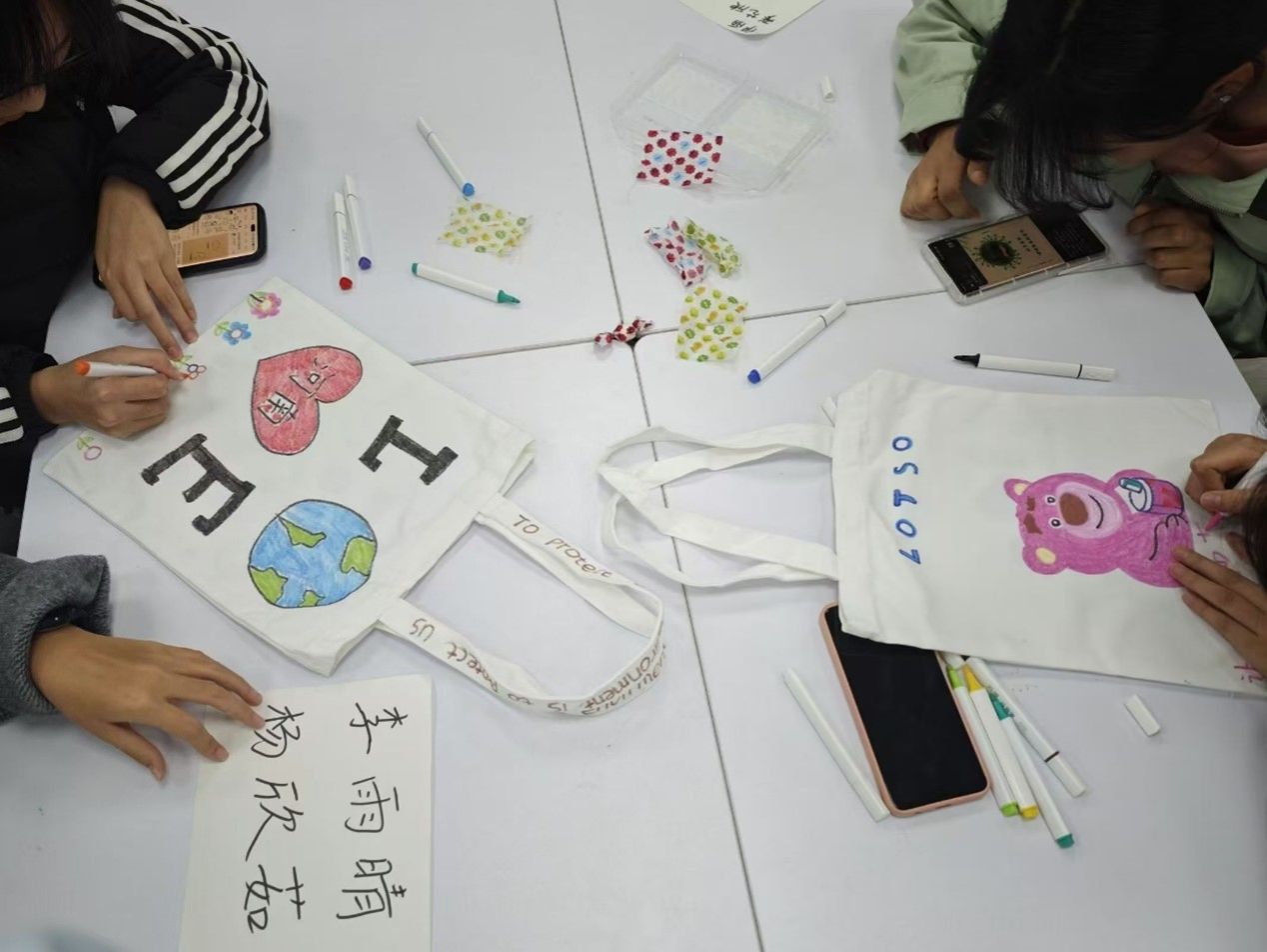 (各宿舍同学共同绘制环保袋)