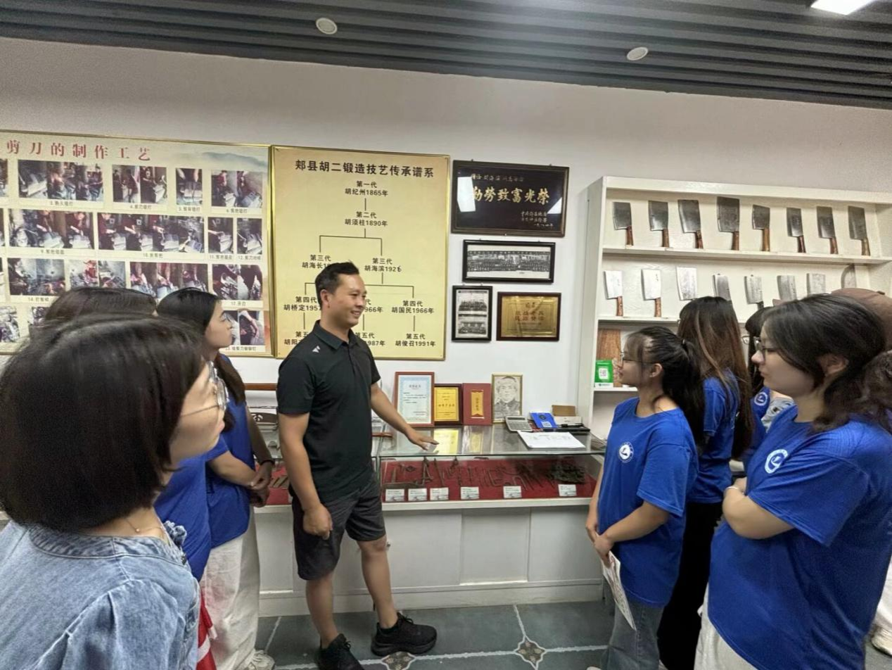 随后,实践团前往茨芭镇齐村胡二刀铺,聆听刀铺第五代传承人讲述家里的抗战英雄的故事。在镇文化站站长李世旭的陪同下,实践团实地探访竹园沟村抗日指挥部旧址。村干部张国战现场讲述旧址选址缘由、展示了战时的地道。队员们聆听先辈事迹,体悟和平安宁来之不易,进一步砥砺初心使命。