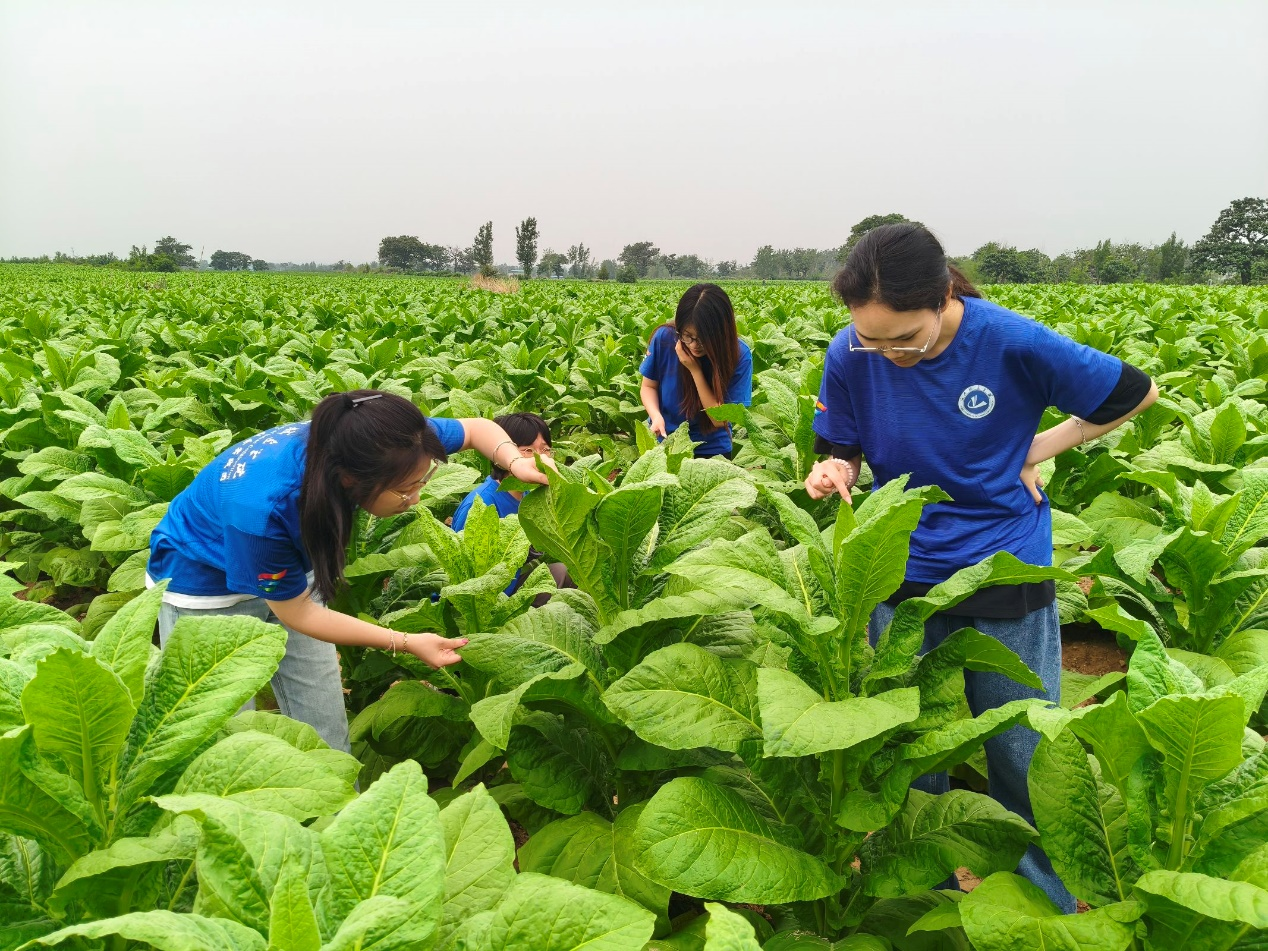 (图为实践团队员观察茨芭镇特色产业—烟叶)