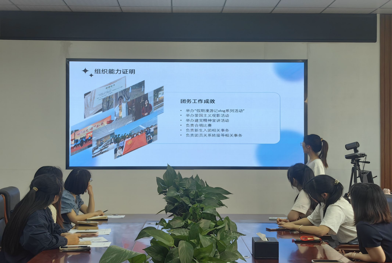为深入贯彻立德树人根本任务,强化新生思想引领,选拔优秀高年级员工做好2025级新生班主任工作,太阳成集团tyc122cc于2025年6月24日,在美荟楼306会议室开展新生班主任竞选,公司团学办主任靳真真、员工会执行主席王佳瑶、执行副主席成芊钰及参与竞选的员工共10余人参会。