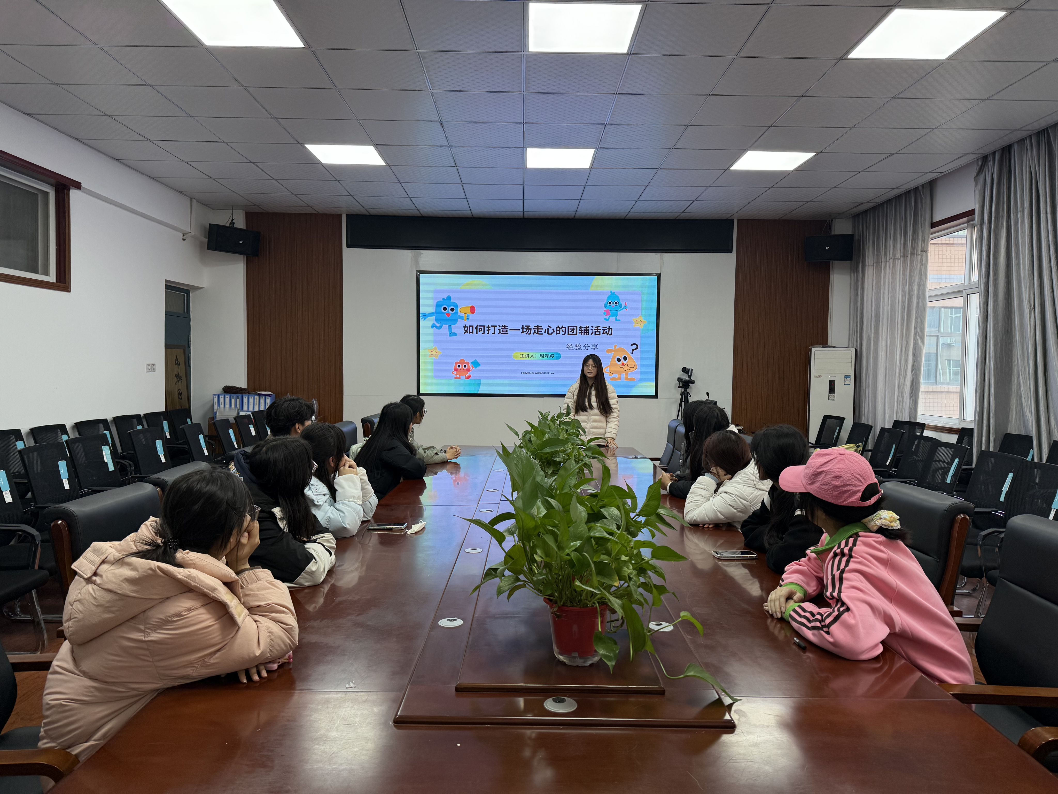 随后,公司心理部部长周泽婷同学以“如何打造一场走心的团辅活动”为主题从活动策划、流程设计、氛围营造、效果反馈等方面对团辅活动进行详细拆解生动展示了团辅活动在提升班级凝聚力、提升人际交往能力中的重要作用