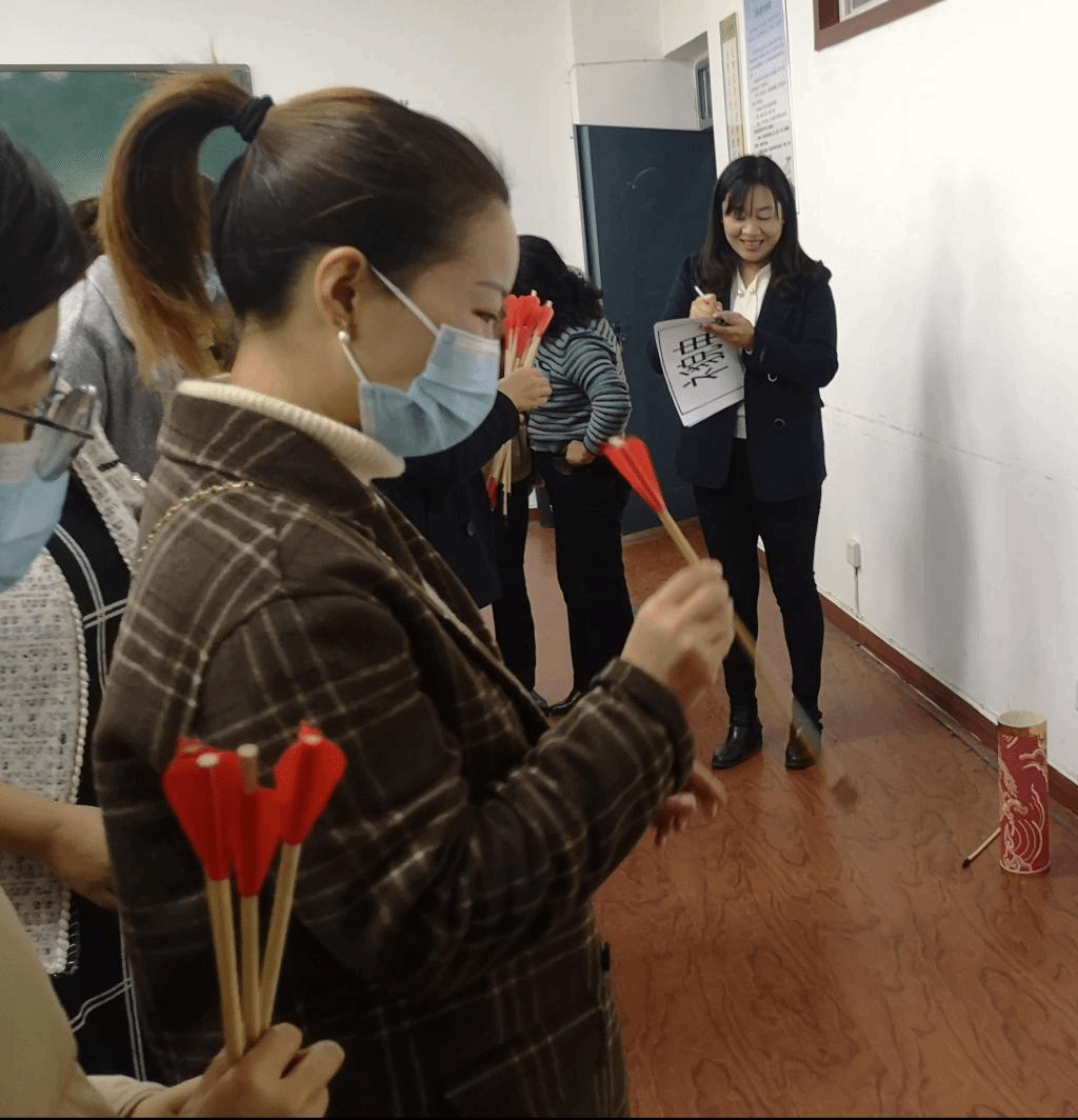(教职工们在参与投壶游戏)