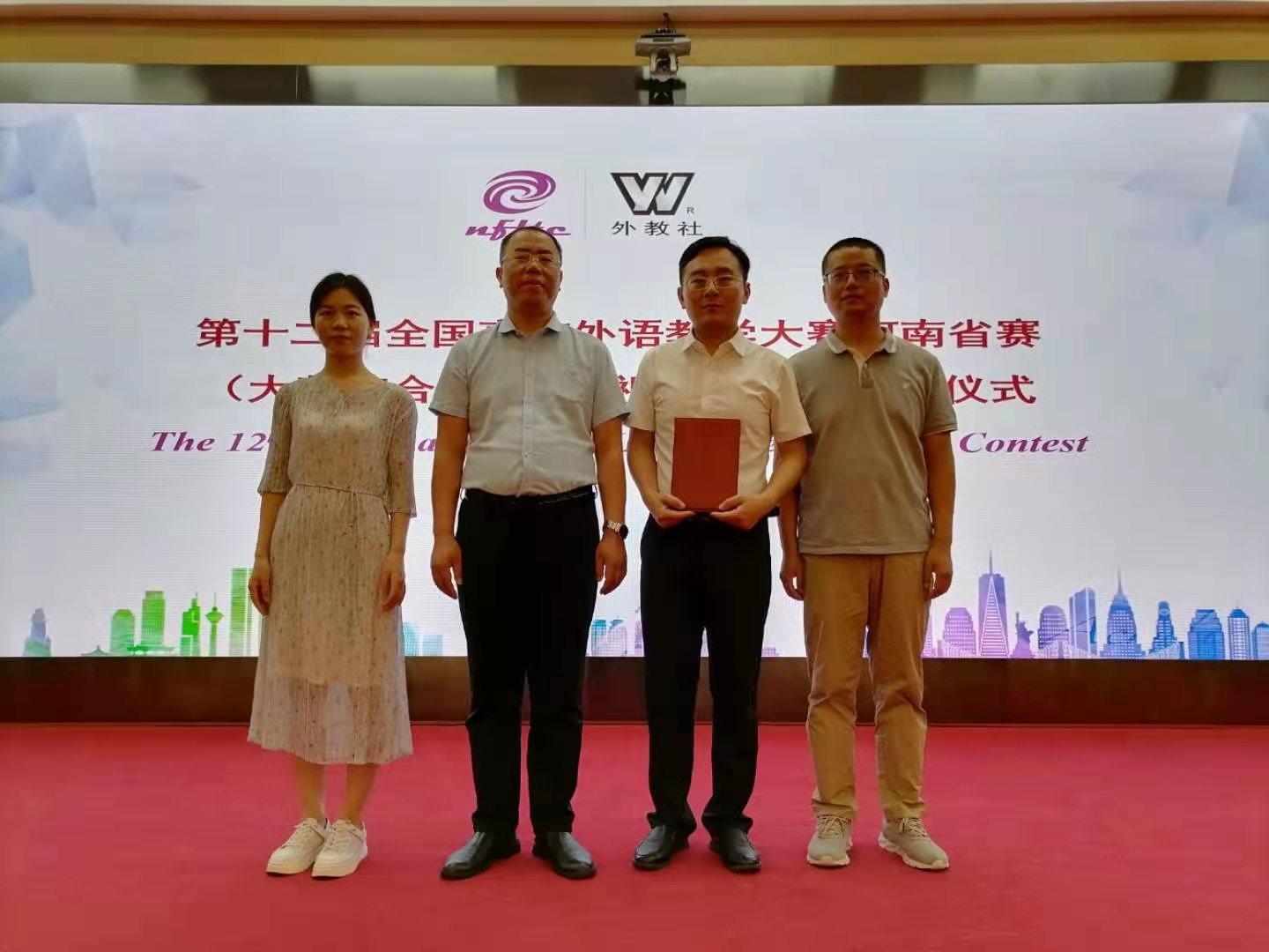 本次大赛是一项级别高、专业性强、竞争激烈的年度大学英语教学赛事,分为校级初赛,省级复赛和决赛三个阶段,设有授课、说课、现场问答等多个环节,共有来自全省包括郑州大学、河南大学、河南师范大学等54所本科高校的54名选手参与省级复赛和决赛角逐。公司教师李攀登在比赛中状态饱满,沉着冷静,不畏强手,最终获得优异成绩。