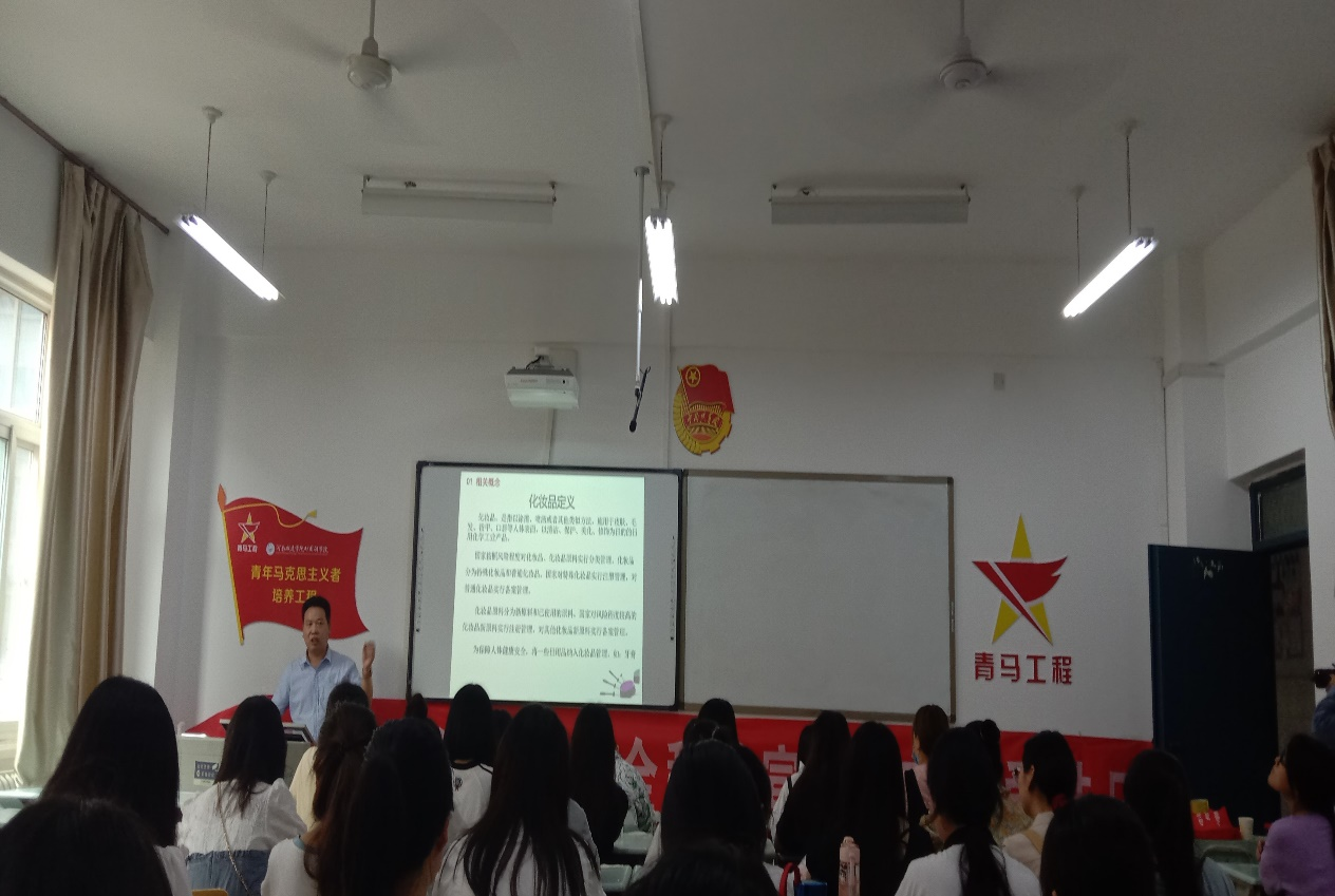 讲座开始前,现场工作人员布置横幅,发放宣传手册,让员工们对化妆品有初步了解。张自立老师向员工们解释了什么是化妆品,化妆品的类别,化妆品标签包括的基本内容,什么是儿童化妆品,化妆品会产生的不良反应以及恰当的解决办法、正确的用妆方法等问题。根据同学们的需求,张老师对化妆品的不良反应做了详细的介绍,并对每一项问题提供了相应的解决办法,引起了女生们的强烈共鸣。