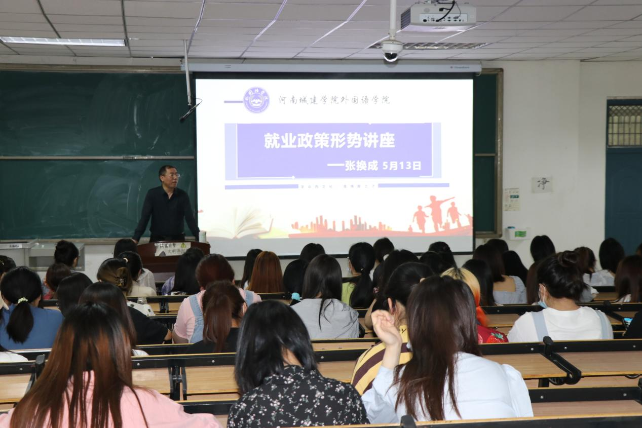 (通讯员 张湘雨)5月13日上午,太阳成集团tyc122cc于和谐校区1号楼122教室举办2021届毕业生就业形势政策讲座。本次讲座由副经理张换成主讲,2021届全体毕业生,毕业班辅导员张雨梦、仝晓菲和就业指导教师张湘雨参加。
