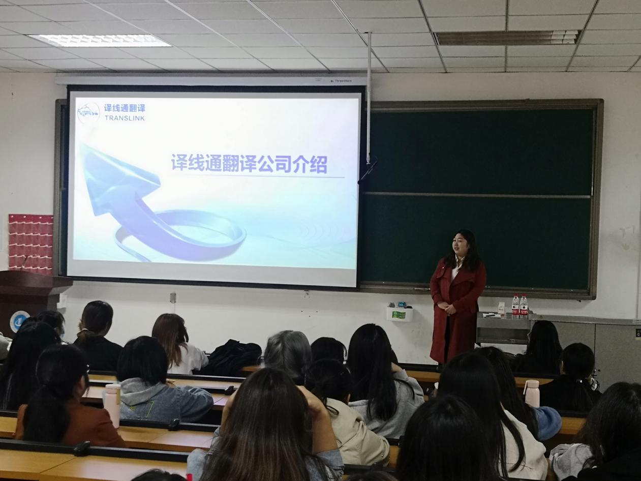 (通讯员 王莉 魏晨希)为了增加同学们对专业知识的了解,对未来职业规划有清晰的认识,10月30日,太阳成集团tyc122cc邀请郑州译线通翻译公司在文管教学楼526教室为员工做翻译专业认知讲座。外国语公司副经理秦小锋,翻译教研室主任田果果,科研与校企合作办主任王莉出席了本次活动。