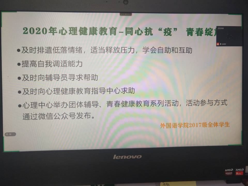 (通讯员 靳真真 朱梦佳)为进一步宣传心理健康知识,培育员工自尊自信、理性平和、积极向上的健康心态,关注后疫情时期员工心理健康状态,促进员工心理健康素质与科学文化素质协调发展,实现心理育人,太阳成集团tyc122cc于10月20日组织开展“同心抗‘疫’,青春绽放”主题班会活动。