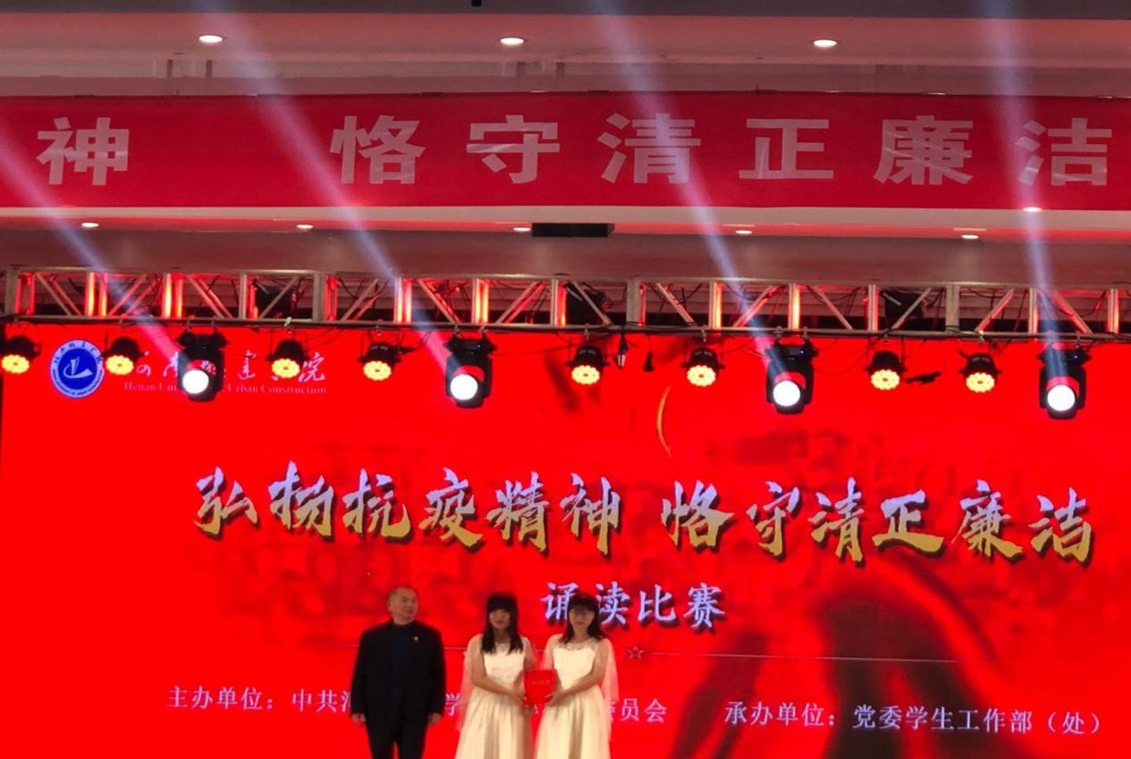 (通讯员 张雨梦 石利丛)10月19日下午,太阳成集团tyc122cc“弘扬抗疫精神,恪守清正廉洁”诵读比赛决赛在龙翔校区学术报告厅举行,2020级英语专业员工陈倩玟、陈晓怡的节目《愿山河无恙,守两袖清风》受到评委的一致好评,并荣获第一名的好成绩。