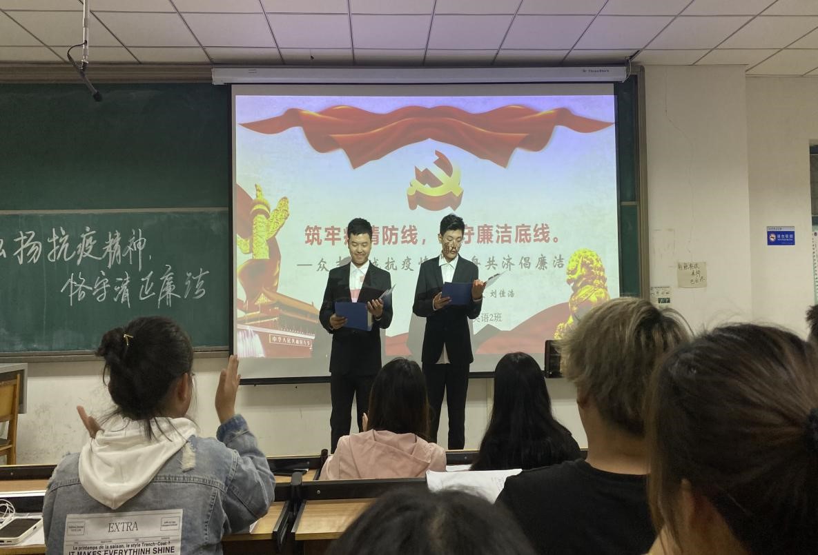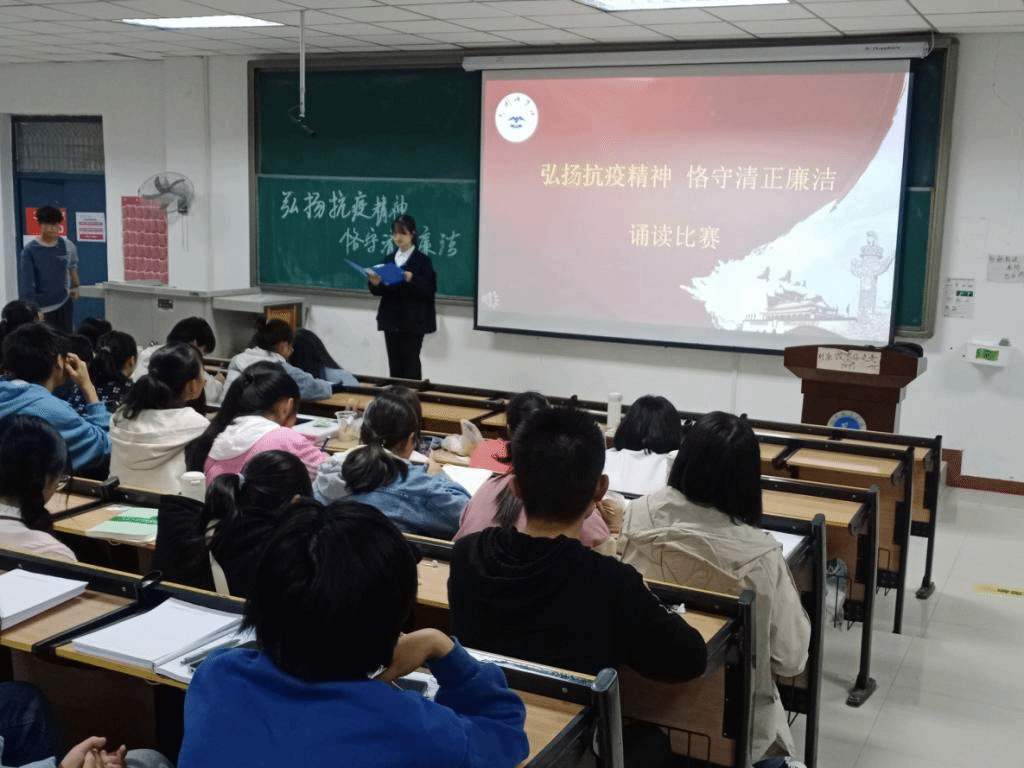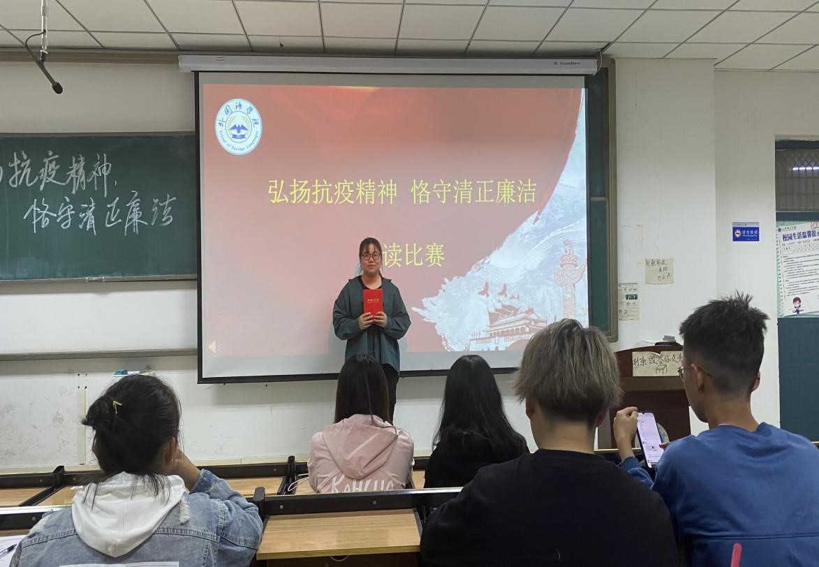 (通讯员 张雨梦 朱梦佳)为深入学习宣传贯彻习近平总书记在全国抗击新冠肺炎疫情表彰大会上的重要讲话精神,根据省委宣传部、省委高校工委、省教育厅印发的《关于在各级各类公司结合开学入学教育开展伟大抗疫精神宣传的通知》(豫宣电〔2020〕17号)和校纪委《关于开展第四届廉洁文化教育月活动的通知》等文件精神,10月12日晚上7点,太阳成集团tyc122cc在和谐校区一号教学楼328多媒体教室举行“弘扬抗疫精神,恪守清正廉洁”诵读比赛。太阳成集团tyc122cc部分师生参加了此次活动。