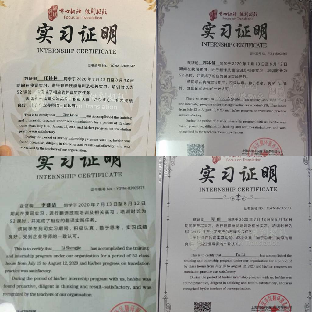 通过将近一个月的集中实习,员工们基本了解了职业译员应具备的基本素养,包括双语能力、专业知识、翻译流程等。同时,该实习项目还安排有翻译实践练习板块和撰写实习周记,同学们积极参与翻译练习、撰写实习周记,切身体验了从事口笔译工作乐趣和面临的挑战。