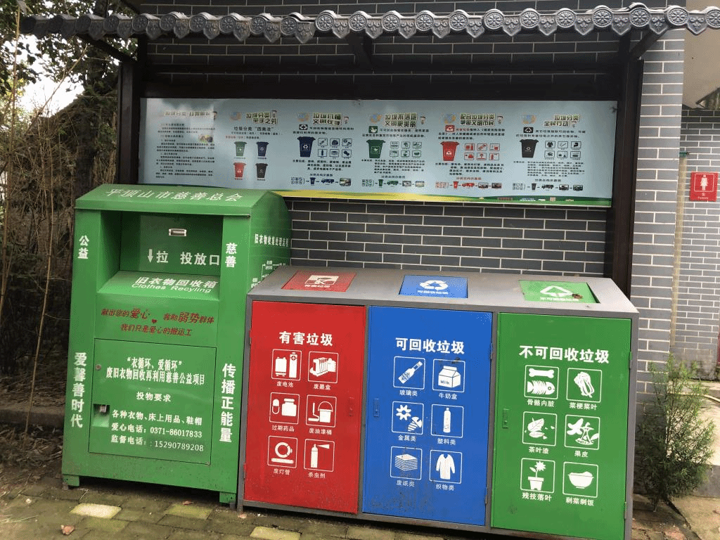 (图为团队成员拍摄的村里安置的分类垃圾回收桶)