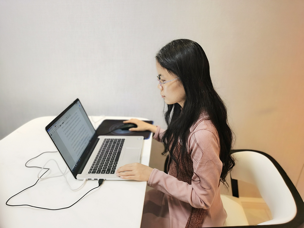 (景丽亚在统计返校员工信息)