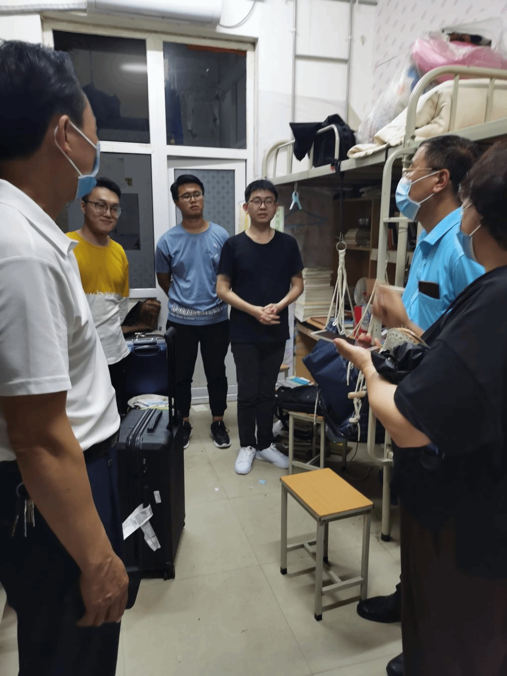 (景丽亚陪同公司领导去员工宿舍走访)